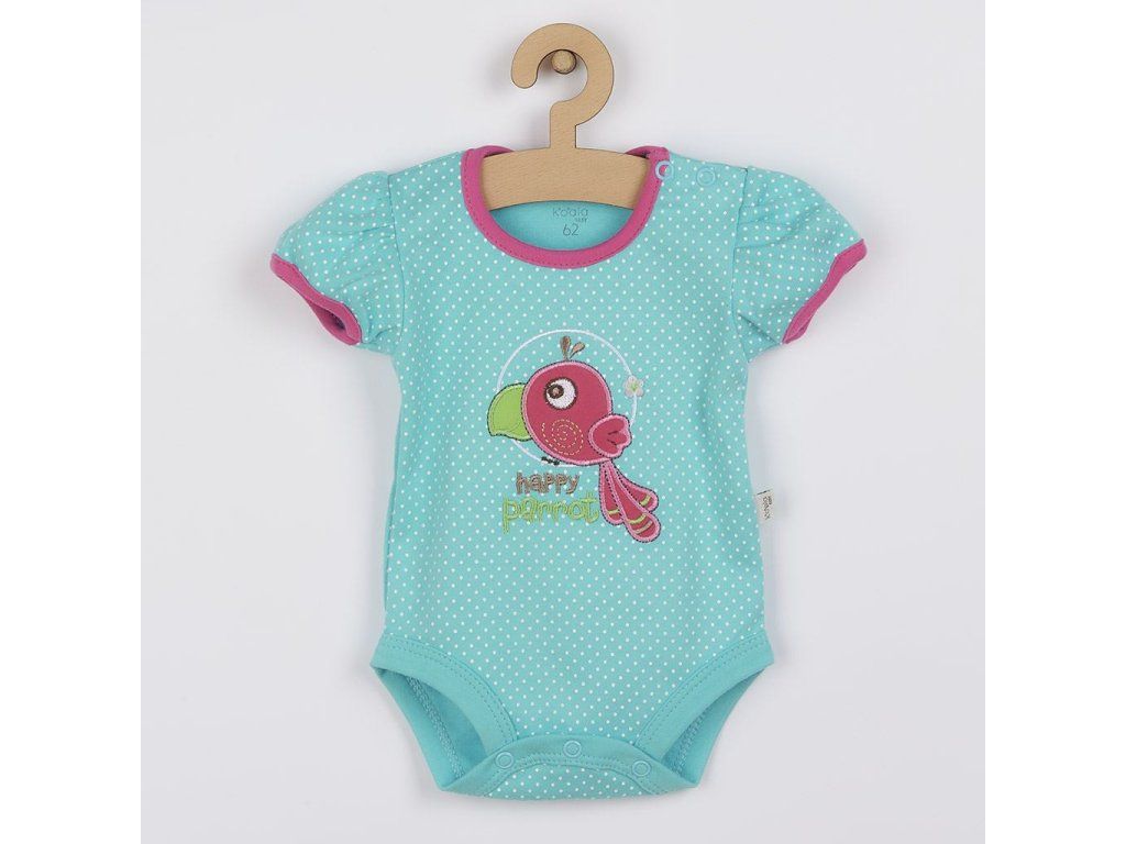 Letné bavlnené body s krátkym rukávom Koala Summertime. Roztomilé dievčenské body s letným motívom má praktické zapínanie na cvočky na ramienku a medzi nožičkam. Zloženie: 100% bavlna.Dodatočné parametre