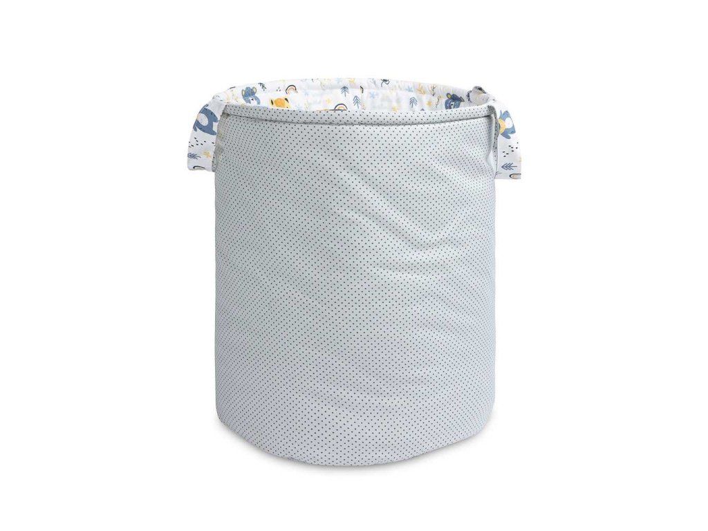 Bavlnený kôš Sensillo je ideálny pre detskú izbu, ktorý pojme veľa hračiek a doplnkov. Možno ho tiež použiť ako kôš na bielizeň. Je obojstranný a jeho poťah je vyrobený zo 100% bavlny. Bol vystužený vrstvou silikónovej netkanej textílie, vďaka ktorej si udržuje svoj tvar, a po zložení sa zmestí do zásuvky. Má rukoväte pre jednoduché prenášanie.