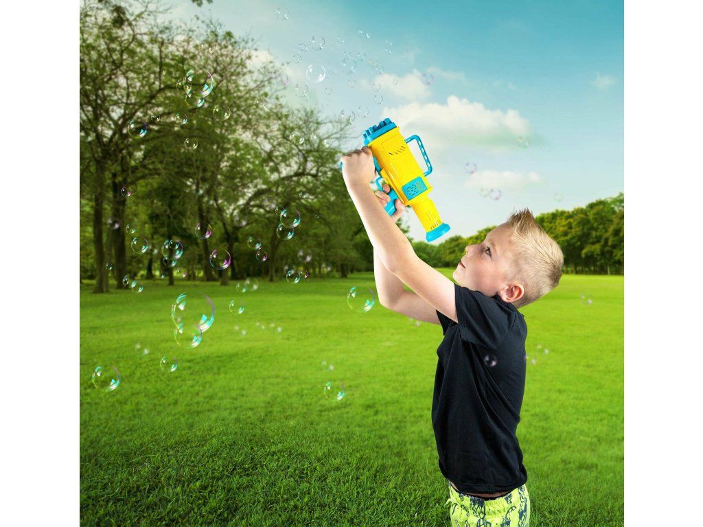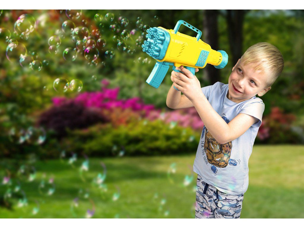 Blaster vytvára obrovské množstvo malých bubliniek jednoduchým stlačením spúšte, čo prináša radosť a fascináciu.
