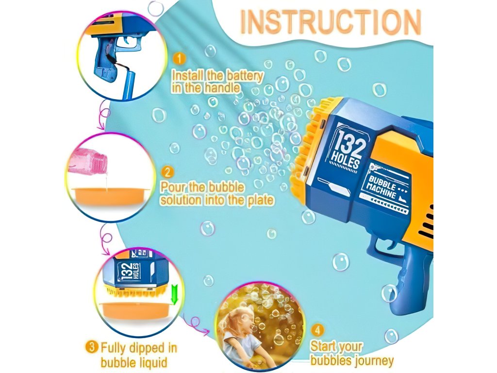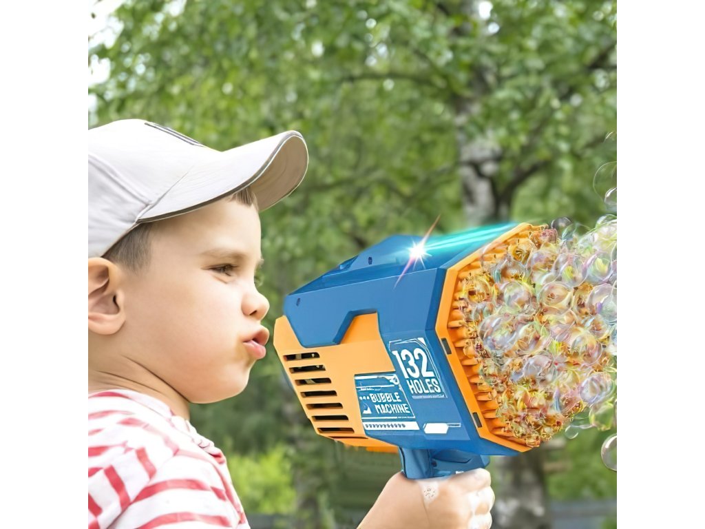 Vytvorte svet bublinovej zábavy a naplňte ho vzrušením s Maxi Bublifukovou Pištoľou. Táto impozantná modro-žltá pištoľ je pripravená na úžasnú bublinovú show. Vďaka neuveriteľným 132 otvorom pre bubliny vytvoríte explóziu radosti a zábavy pre všetkých okolo seba.