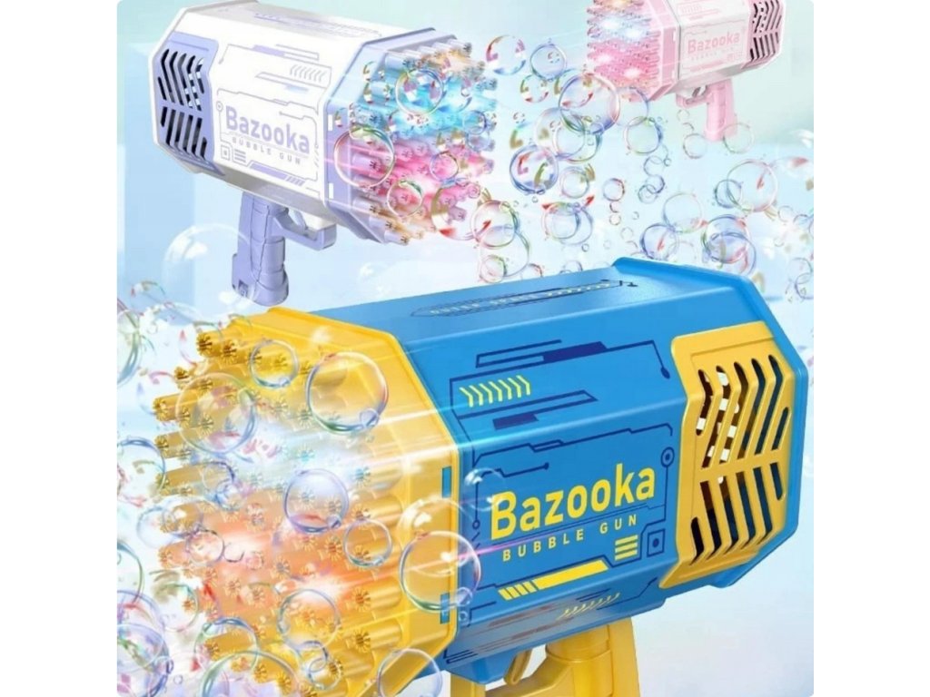 Oživte svet bublín zábavou a vzrušením vďaka Mega bublifukovou pištoľou Bazooka. Táto obrovská modro-žltá kráska je pripravená na extra bublinovú akciu ako žiadna iná. S neuveriteľnými 69 otvormi pre bubliny vytvoríte explóziu radosti a zábavy pre všetkých vo vašom okolí.