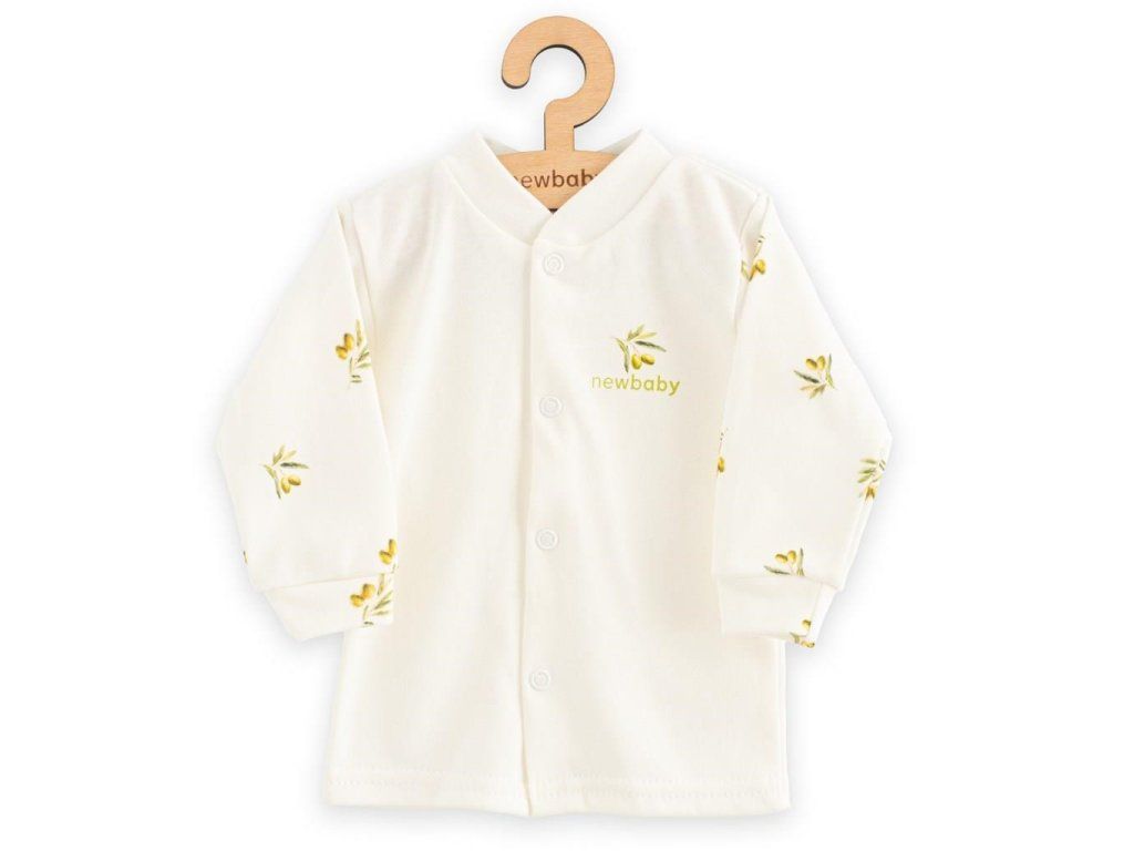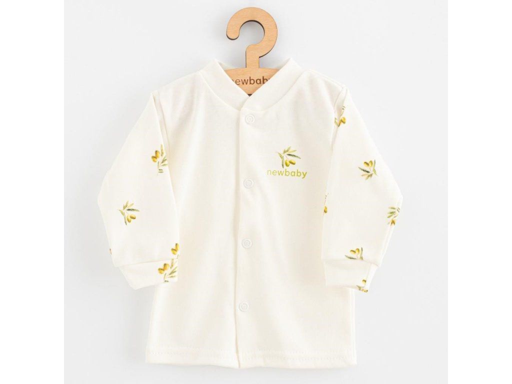 Krásny bavlnený dojčenský kabátik New Baby Olivy s jemnou potlačou oliviek. Zapínanie na cvočky po celej dĺžke uľahčuje obliekanie aj prebaľovanie.