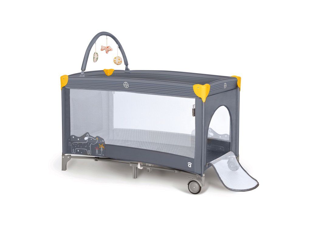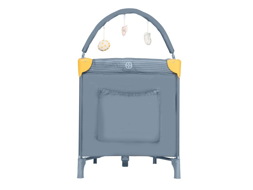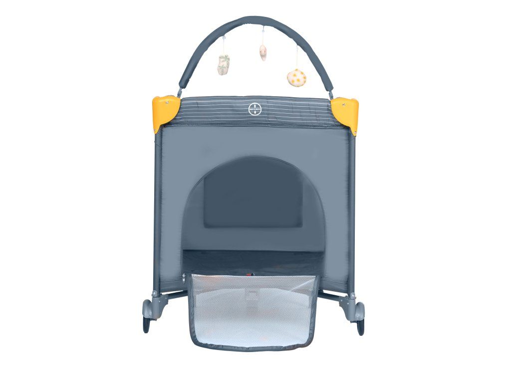Výbava zahŕňa: polstrovanú základňu (matrac), tašku na prenášanie, hrací oblúk, závesné lôžko a bočnicu s praktickým otvorom na zips na vyliezanie, krásne potlače a praktické nákresy na jednoduché zostavenie.