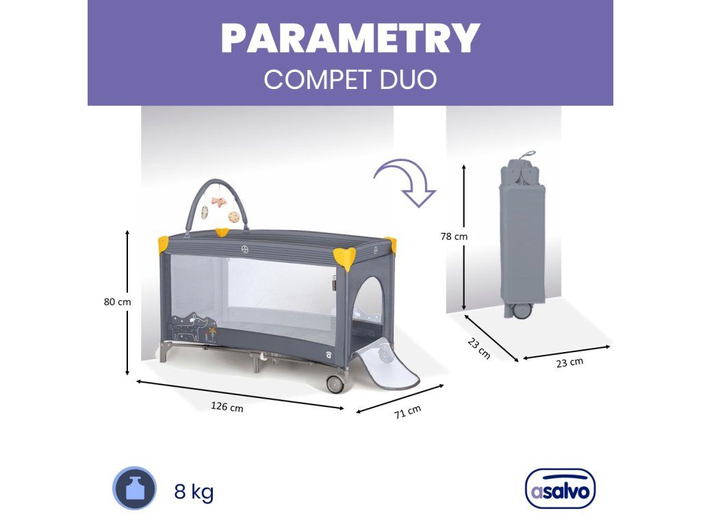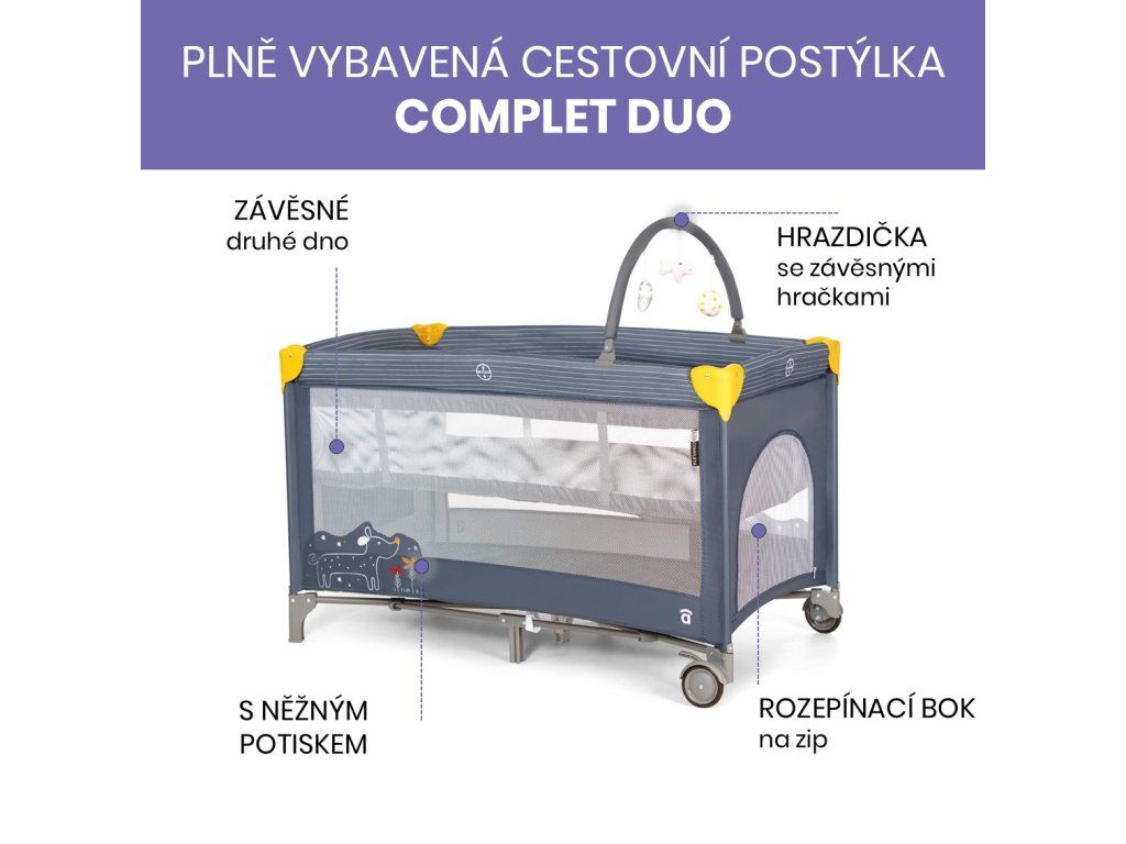 Cestovná postieľka COMPET DUO spája bezpečnosť a praktický dizajn.
