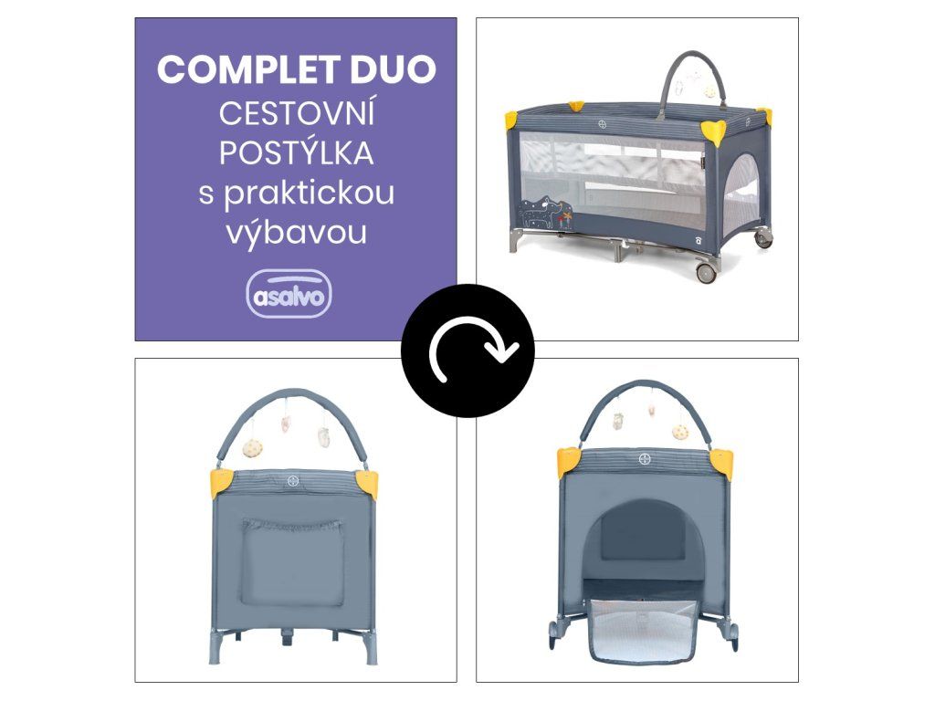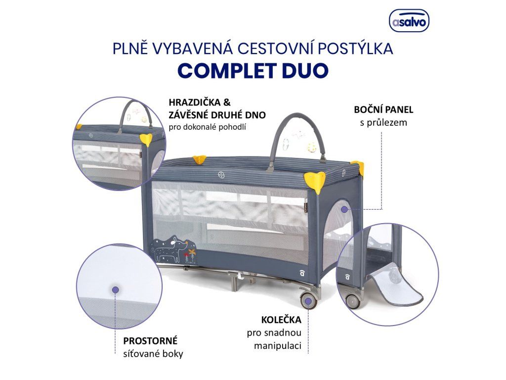 Asalvo COMPLET DUO cestovná postieľka (závesné lôžko, hrací oblúk), puppy