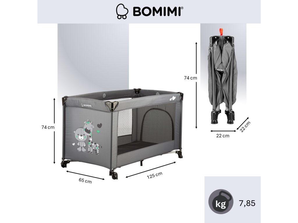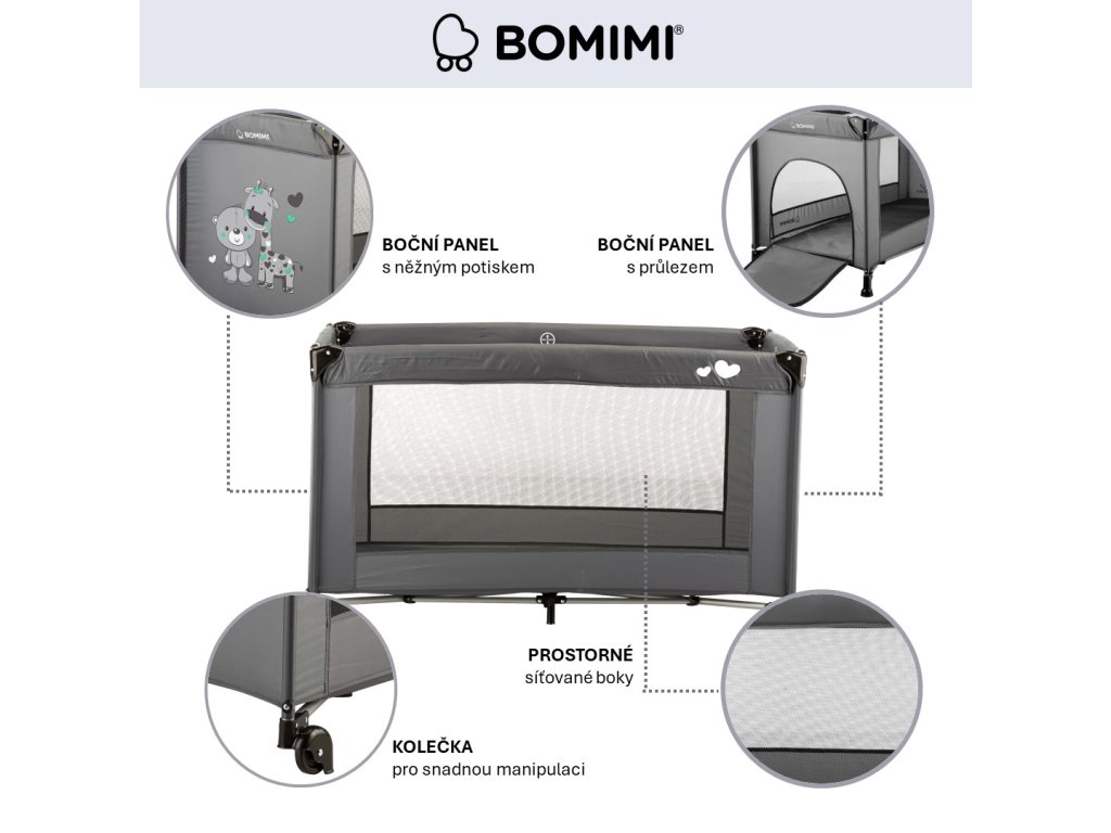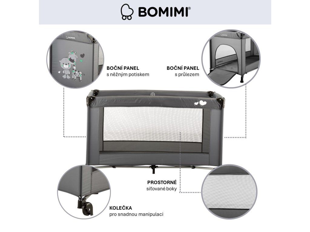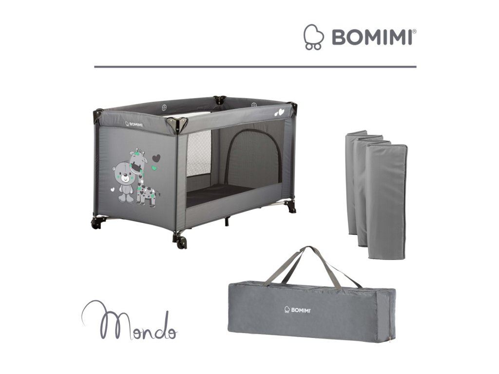 Bomimi MONDO cestovná postieľka giraffe&bear, anthracite