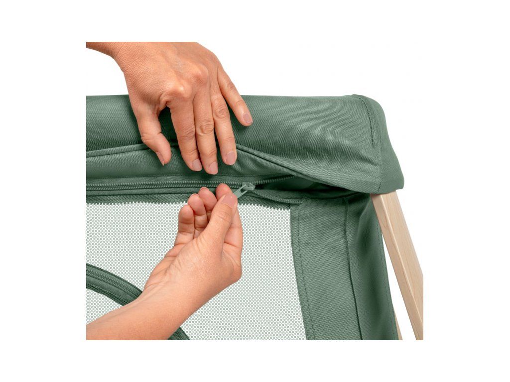 Snímateľný poťah postieľky Eco Care je s ohľadom na udržateľnosť životného prostredia vyrobený zo 100% recyklovaných materiálov a je možné ho prať v práčke.