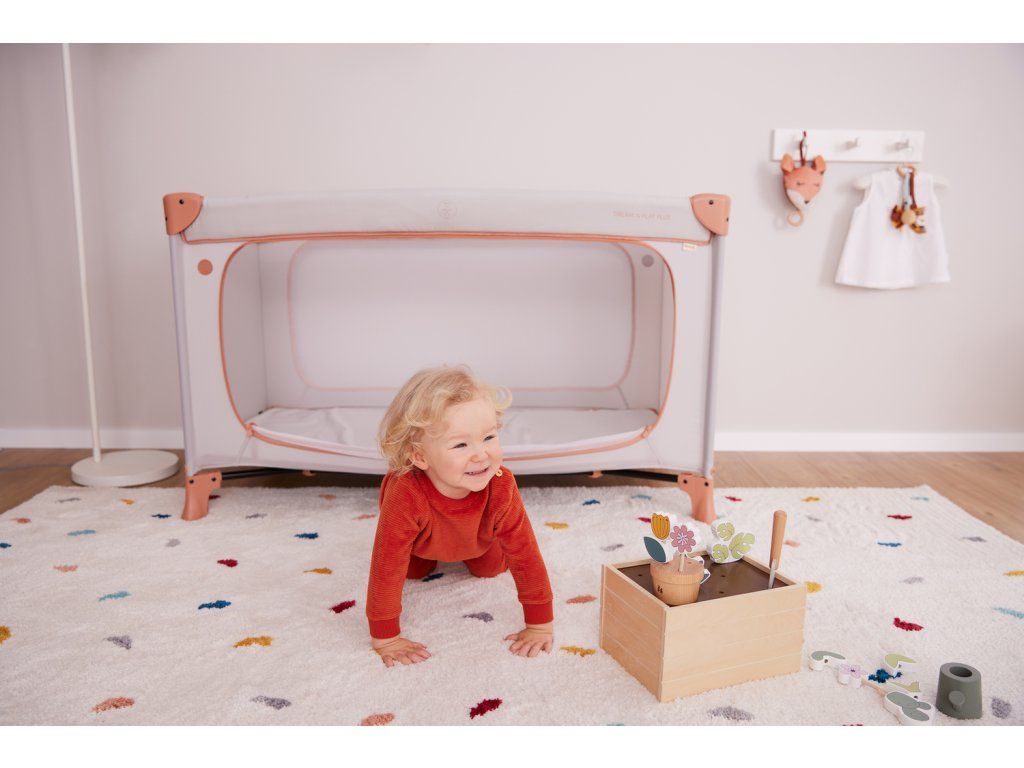 BEZPEČNÉ MIESTKO CEZ DEŇ AJ V NOCI // DREAM N PLAY PLUS cestovná postieľka ponúka bezpečné miestečko v nadčasovom vzhľade pre vašich najmenších až do 15 kg. Je ideálnym miestečkom hier aj odpočinku, keď ste na cestách.