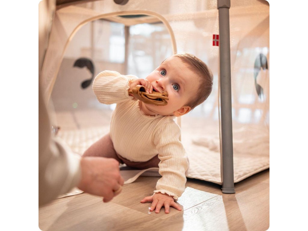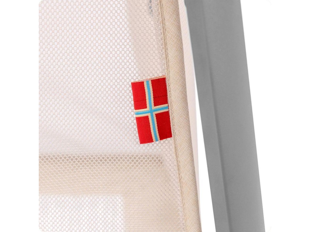 Pevný hliníkový rám, kvalitné spoje a protišmykové nožičky zaisťujú stabilitu pri spánku aj pri hre. Výrobok spĺňa bezpečnostné normy EN 1130:2019+AC:2020 a EN 12227:2010, takže máte istotu, že vaše dieťa je vždy v bezpečí.