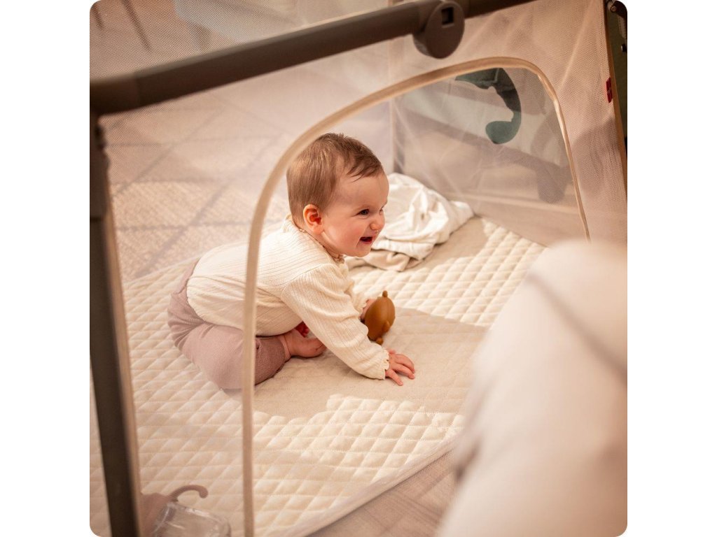 Súčasťou balenia je mäkký a stabilný matrac, ktorý zaisťuje pohodlie a zdravú polohu pri spánku. Vďaka nej bábätko spí pokojne a bezpečne kdekoľvek – doma aj na cestách.