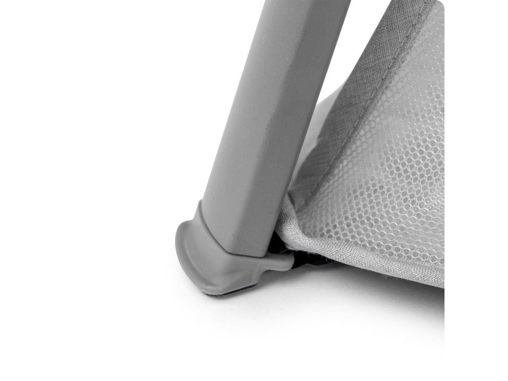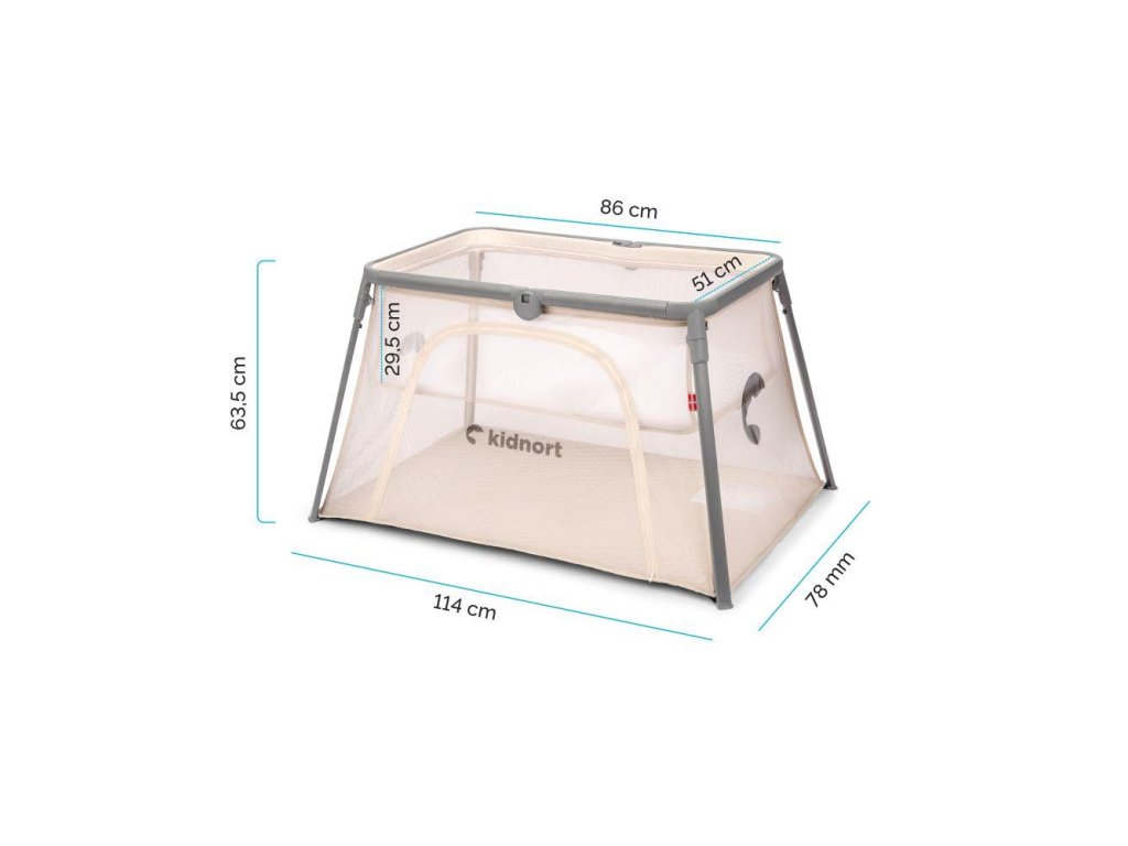 Pevný hliníkový rám, kvalitné spoje a protišmykové nožičky zaisťujú stabilitu pri spánku aj pri hre. Výrobok spĺňa bezpečnostné normy EN 1130:2019+AC:2020 a EN 12227:2010, takže máte istotu, že vaše dieťa je vždy v bezpečí.