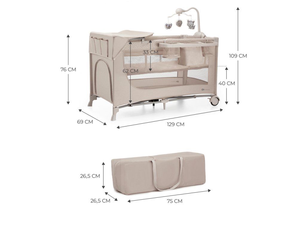 KINDERKRAFT Postieľka cestovná Joy 2 s doplnkami Beige