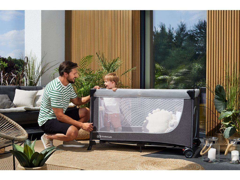 Postieľka má systém s dvojitým zabezpečením pred spontánnym zložením. Sieťované boky vám umožnia mať celý čas zrakový kontakt s dieťaťom, a pritom mu zaručia prísun vzduchu, dokonca aj počas horúcich nocí.