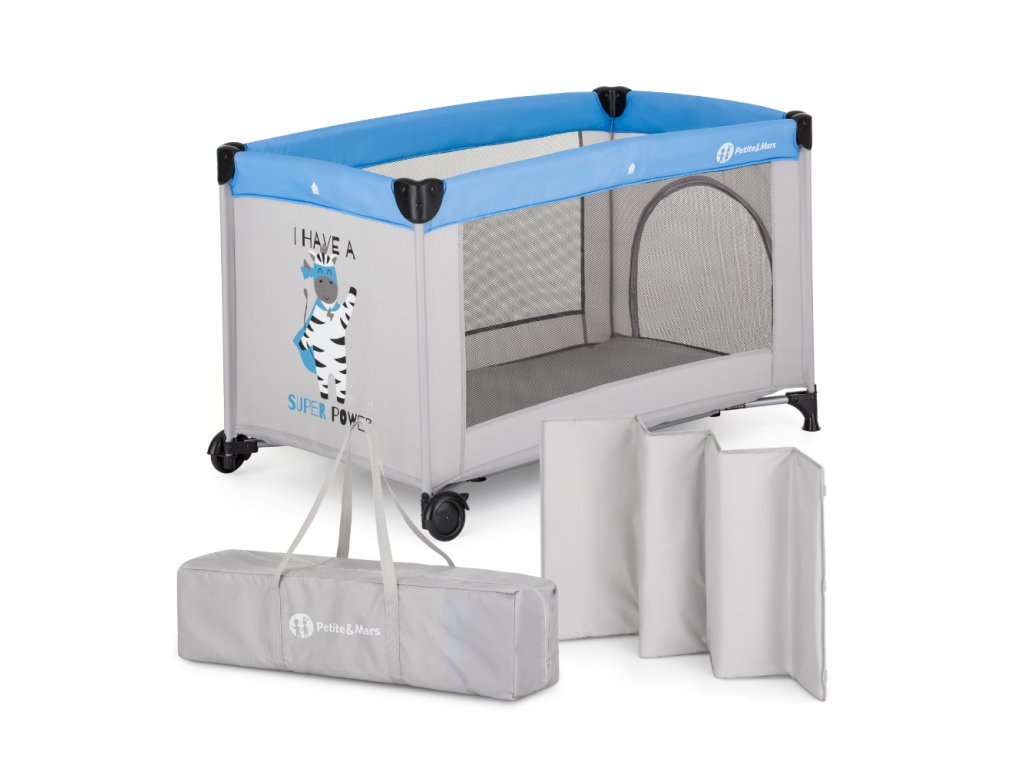 PETITE&MARS Postieľka cestovná Koot - Zebra Super Power