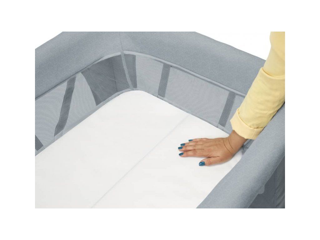 Postieľka je vybavená skladacím dvojdielnym penovým matracom. Pre bábätko od narodenia je určená polovičná veľkosť matraca na vytvorenie útulného prostredia s vyvýšeným dnom. Pre dieťa od cca 6 mesiacov spojíte oba diely matraca zipsom a umiestnite ho na dno postieľky. Pre obe veľkosti matraca je možné dokúpiť samostatne predávané naťahovacie plachty.
