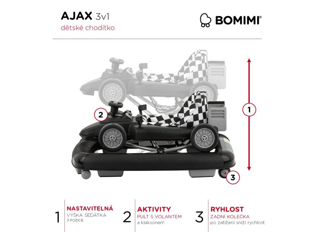 Bomimi AJAX detský chodák 3v1 black