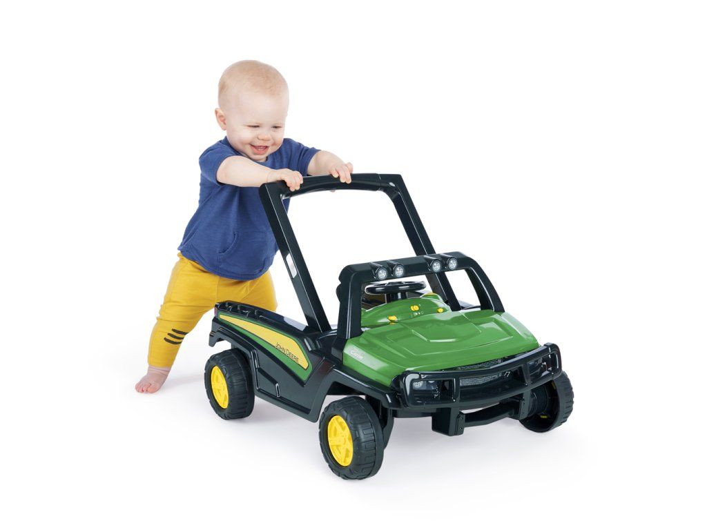 - 4 režimy hrania umožňujú tomuto realistickému John Deere Gator chodítku rásť spolu s dieťaťom