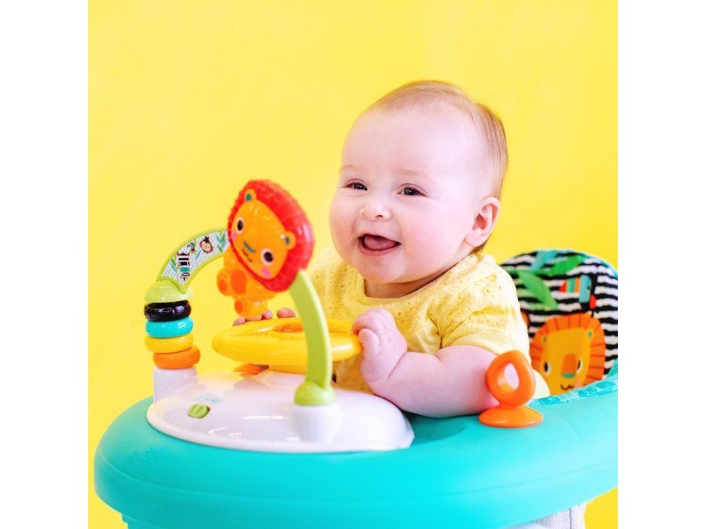 Predtým, než Vaše dieťatko urobí sám prvé kroky, môže prostredníctvom chodítka preskúmať svet a hľadať nové dobrodružstvá. Priateľský motív zvieratiek zo safari sprevádza dieťatko pri objavovaní.Odnímateľný hrací pult obsahuje hračky s aktivitami, ktoré dieťatku pomáhajú rozvíjať motorické zručnosti. Poskytuje tak aj zábavu počas hier na podlahe. Volant aktivuje svetlá a zábavné zvuky. Vysoké zadné operadlo poskytuje mimoriadnu podporu pre dieťatko. Chodítko je možné nastaviť do 3 výškových polôh, čím sa chodítko prispôsobuje rastu dieťatka.