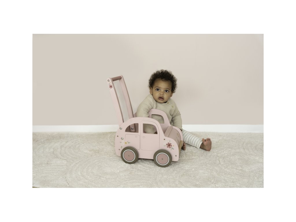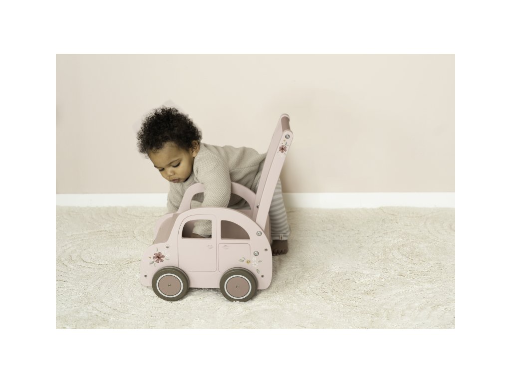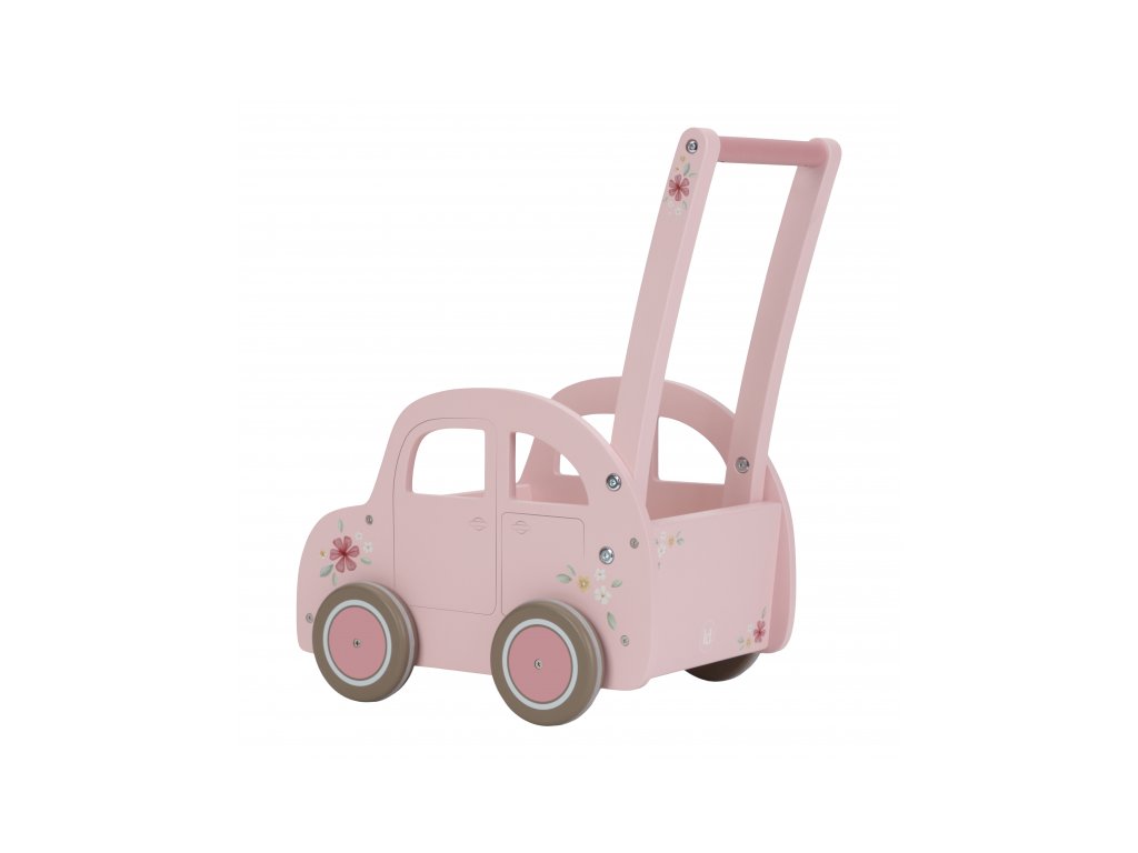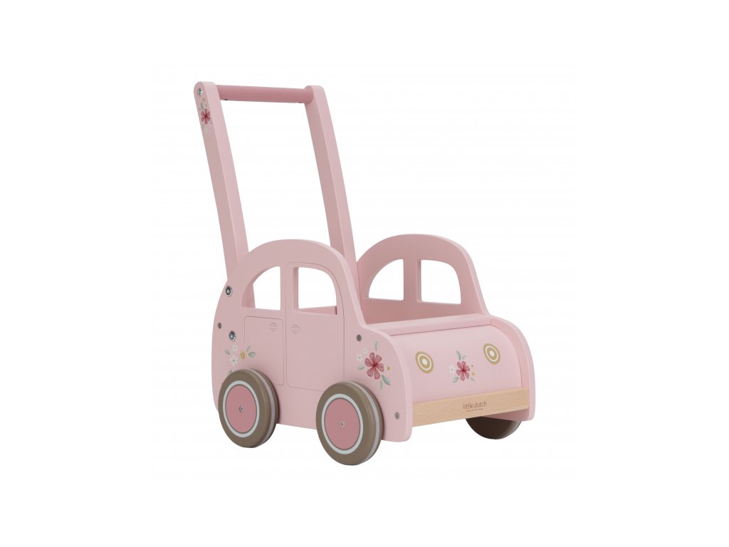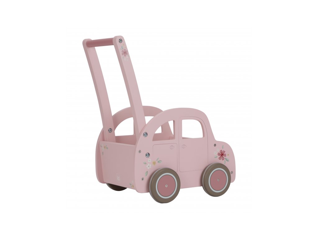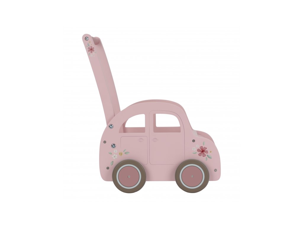 Drevený vozík v podobe ružového auta s krásnou kvetinovou potlačou je ako stvorený na prevážanie obľúbených hračiek, plyšákov a pod. Vozík využijete aj na spoločné upratovanie hračiek a bude slúžiť aj ako krásna dekorácia v detskej izbe.