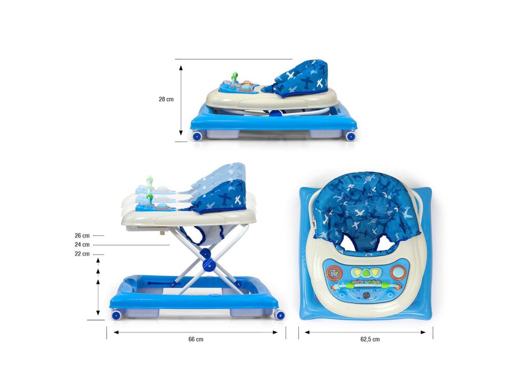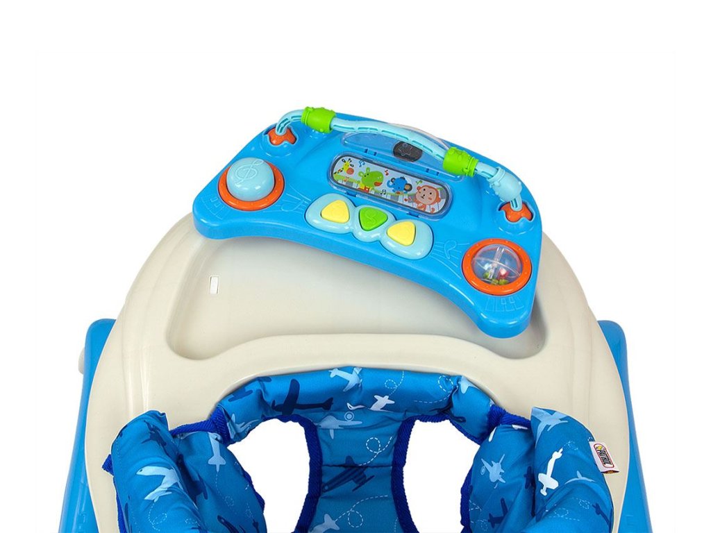 Výrobok má výukový panel, ktorý obsahuje množstvo prekvapení čakajúcich na malých prieskumníkov: svetielka, pískanie, melódie, hrkálka, tlačidlá a ďalšie pohyblivé prvky. Po sňatí panelu z podnosu chodítka poslúži ako samostatná hračka, napríklad ako spoločník na cesty, a doska poslúži ako hrací stolík.