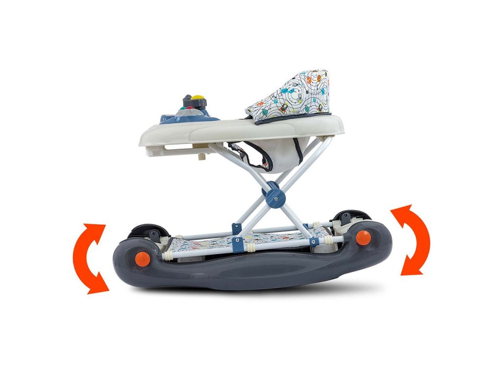 Detské chodítko Patrol Plus s hojdačkou má 2 funkcie. Prvou je základná funkcia klasického chodítka a druhou je funkcia hojdačky. Ak chcete na našom chodítku PATROL Plus zvoliť funkciu hojdania, zatiahnite za rukoväte umiestnené na oboch stranách zábradlia, majú gumové krytky, a potom ich rozložte. Pri možnosti hojdania umiestňujeme pod sedadlo materiál s háčikmi ako kryt, ktorý chráni dieťa.
