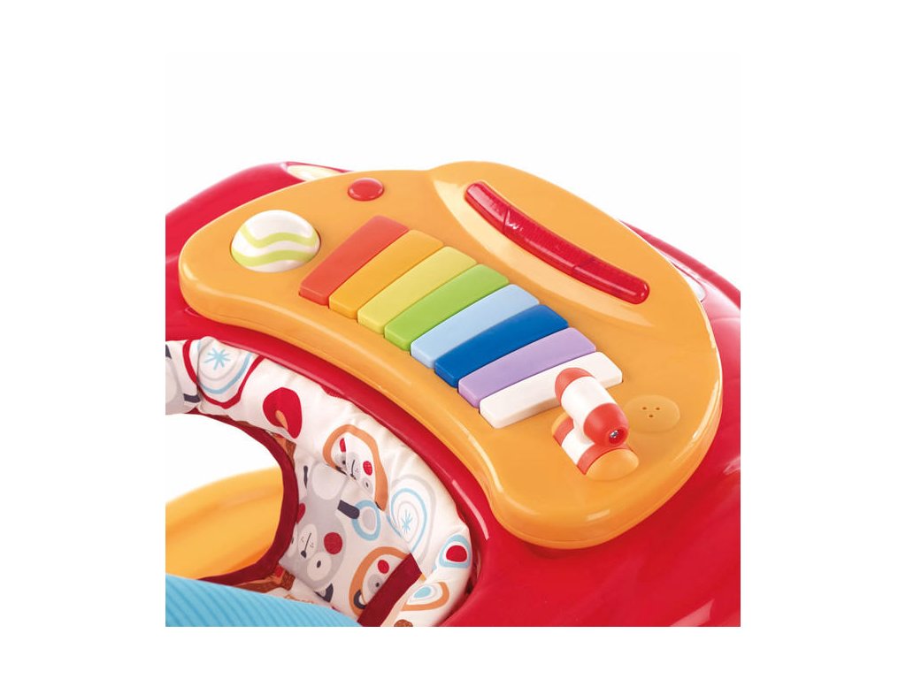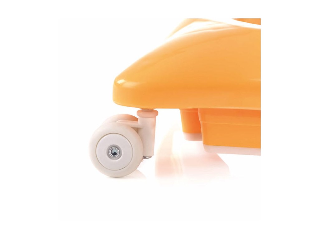Chodilo s inovatívnym športovým designom, ktorý zahŕňa multifunkčný hrací panel. Sedadlo je výškovo nastaviteľné do 3 polôh. Snímateľný a prací poťah sedadla s mäkkou výplňou. Nové nehlučné silikónové kolieska sú optimálne na parketovú dlážku.