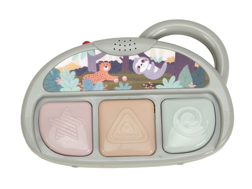 E. Po stlačení hrá piano veselé melódie a bliká.