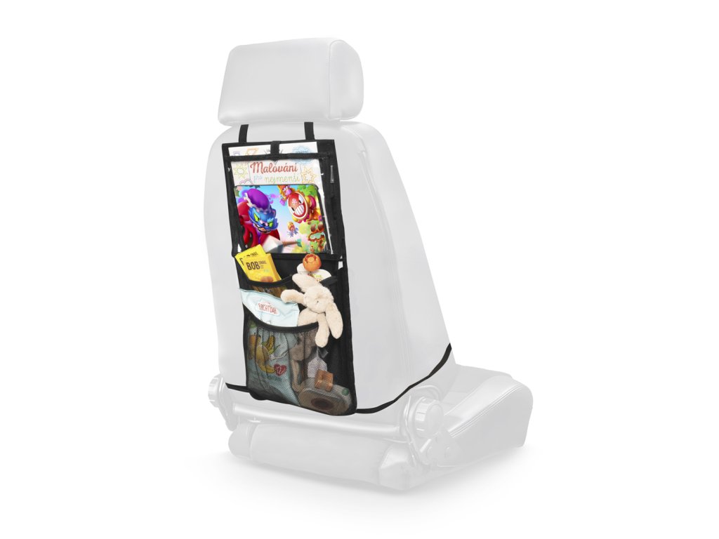 Chytrý a efektívny organizér na sedadlo auta spríjemnia cestu nielen vám, ale vďaka vrecku na tablet tiež vašim deťom, ktoré sa môžu zabaviť sledovaním rozprávok. Vrecko na tablet je veľká, takže možno umiestniť tablet s uhlopriečkou až 24 cm. Dve hlboké vrecká na ďalšie predmety, ako sú napríklad hračky, robia z organizéra príjemnú cestovnej pomôcku, ktorá pomôže udržať poriadok vo vozidle aj pri cestovaní s vašimi najmenšími. Organizér sa vďaka prackám ľahko pripevní na zadnú stranu sedadla a ľahko ho tiež odoberiete.