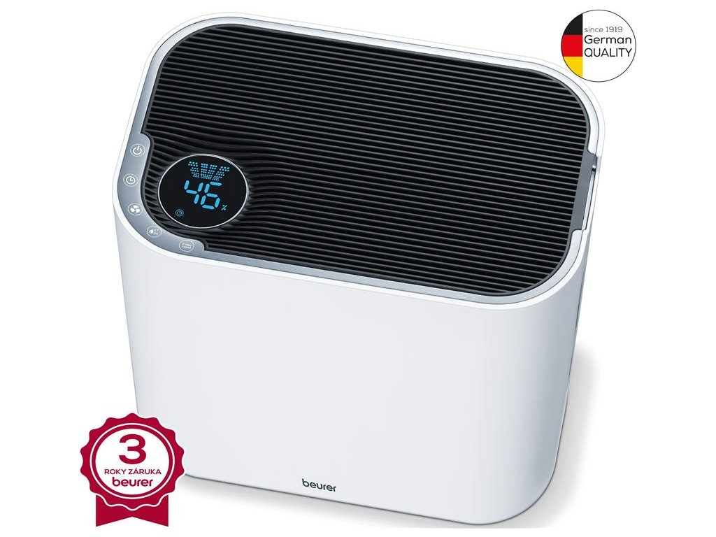 Obnovte svoj obytný priestor a vytvorte príjemné prostredie s čističkou vzduchu a zvlhčovačom 2v1 Beurer LR 330 Comfort od nemeckého výrobcu Beurer. Kompaktná konštrukcia modelu Beurer LR330 umožňuje filtrovať vzduch a regulovať vlhkosť bez toho, aby zaberal príliš veľa priestoru.Filtrácia vzduchu: trojitý filtračný systém (predfilter + filter s aktívnym uhlím + EPA) + umytie vzduchu (vodný filter).Princíp filtrácie:Účinnosť filtrácie: 85%.Zvlhčovací výkon: 220 ml/h.Displej s aktuálnou hodnotou vlhkosti.Možnosť nastavenia požadovanej vlhkosti. Univerzálny dizajnBeurer čistička vzduchu a zvlhčovač 2-v-1 s kompaktným dizajnom umožňuje čistiť vzduch a regulovať vlhkosť miestnosti v jednom zariadení. Funkcia Comfort Air má funkciu výberu cieľa, ktorá sa prispôsobí vašim potrebám.Výnimočný výkonZískajte dôkladnú filtráciu vzduchu cez trojvrstvový filtračný systém čističa vzduchu, ktorý obsahuje predfilter, filter s aktívnym uhlím a EPA filter. Tento systém odstraňuje prach, pachy, baktérie, spóry, alergény a ďalšie nečistotiy tak, aby bol vzduch čistý a bezpečný pre vašu rodinu. Navyše má Beurer LR 330 aj funkciu umývačky vzduchu (vodný filter). Je vhodná pre miestnosti do 35 m2. Spoľahlivé zvlhčovaniePre zvýšenie pohodlia sa systém zvlhčovača Beurer LR 330 automaticky dá nastaviť na požadovanú úroveň vlhkosti. Komfortný zvlhčovač vzduchu je vybavený nádržou na vodu s objemom 4,6 litra a má výkon zvlhčovania až do 220 ml / deň.Pohodlná údržbaVstavaný indikátor výmeny filtra vám umožní zistiť, kedy budete musieť vymeniť filtre čistiaceho zariadenia Beurer (približne 1000 hodín prevádzky). Umývateľná nádrž je vhodná do umývačku riadu pre rýchle a jednoduché čistenie po dlhšom používaní.Charakteristika a technické údaje: 2 v 1 - čistenie vzduchu a zvlhčovač v jednom prístroji pre jedinečne čisté prostredie čistenie vzduchu cez trojvrstvový filtračný systém (vstupný filter + EPA filter + filter s aktívnym uhlíkom) životnosť filtra cca 1000 hodín nastavenie požadovanej vlhkosti vzduchu (40-80%) pre miestnosť do 35 m2 zvlhčovací výkon až 220 ml / hod prietok vzduchu až 200 m3 / hod podsvietený displej funkcia časovača automatické vypnutie indikátor výmeny filtra rozoberateľný nádrž na vodu: 4,6 l tichá prevádzka hlučnosť: menej ako 49 dB spotreba cca 35 WDodatočné parametre