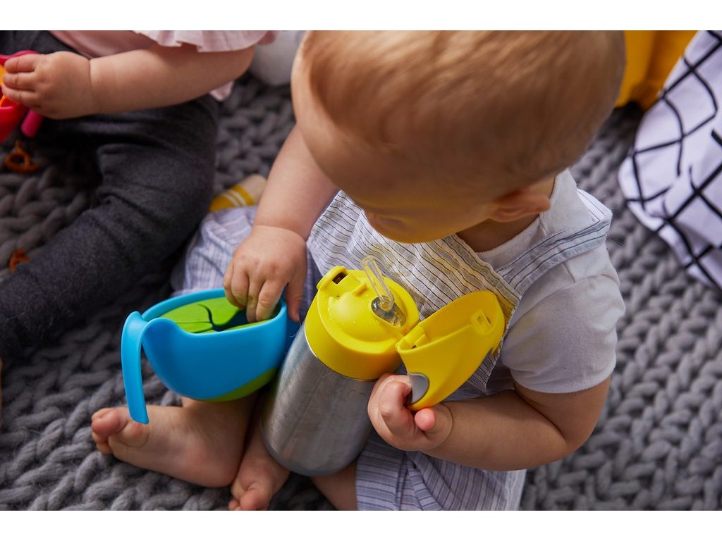Varovné a bezpečnostné informácie: Nepoužívajte s kyslými tekutinami, môže dôjsť ku korózii materiálu. Niektoré tekutiny môžu spôsobiť zafarbenie produktu. Toto nemá vplyv na funkčnosť produktu a nie je dôvodom na reklamáciu. Do termosky nepatria z bezpečnostných dôvodov vriace/horúce a perlivé nápoje. Nepoužívajte pre tekutiny teplejšie ako 45°C (hrozí obarenie). Pokiaľ používate termosku na teplé nápoje, buďte opatrní pri otváraní, pretože tekutina môže ľahko vystreknúť. Vždy skontrolujte teplotu nápoja pred podaním dieťaťu! Nepoužívajte slamky na džúsy s dužinou. Slamka nie je určená pre deti mladšie ako 6 mesiacov. Nikdy nepoužívajte cumlík alebo slamku ako cumlík. Nenechávajte dieťa bez dozoru dospelej osoby. Pred každým použitím skontrolujte, či sú všetky časti produktu v poriadku a pri známkach opotrebovania nedávajte dieťaťu a zlikvidujte. Nenechávajte na priamom slnku alebo pri zdroji tepla. Obaly a nepoužívané časti uchovávajte mimo dosahu detí. Nepatrí do rúry, mrazničky ani mikrovlnnej rúry. Nenechajte dieťa pri používaní s produktom behať alebo sa inak pohybovať. Obaly a nepoužívané časti uchovávajte mimo dosahu detí.