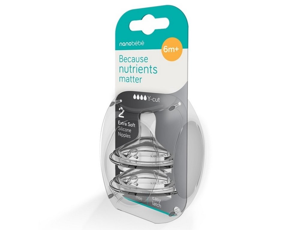 Nanobébé Silikónový cumlík na fľašu Nanobébé - rýchly prietok Y - 2 ks, od 6m+