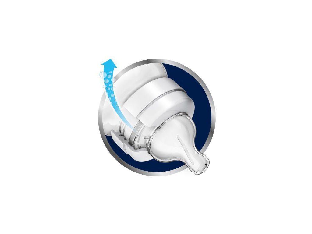 Silikónový cumlík AVENT má jedinečný patentovaný okraj, ktorý funguje ako jednosmerný ventil. Cumlík umožňuje prúdenie vzduchu do fľaštičky počas kŕmenia, čím zamedzuje vzniku vákua vo fľaštičke. Dieťa sa nemusí cumlíka pri kŕmení púšťať a môže piť súvisle ako pri dojčení bez prehĺtnutia vzduchu.