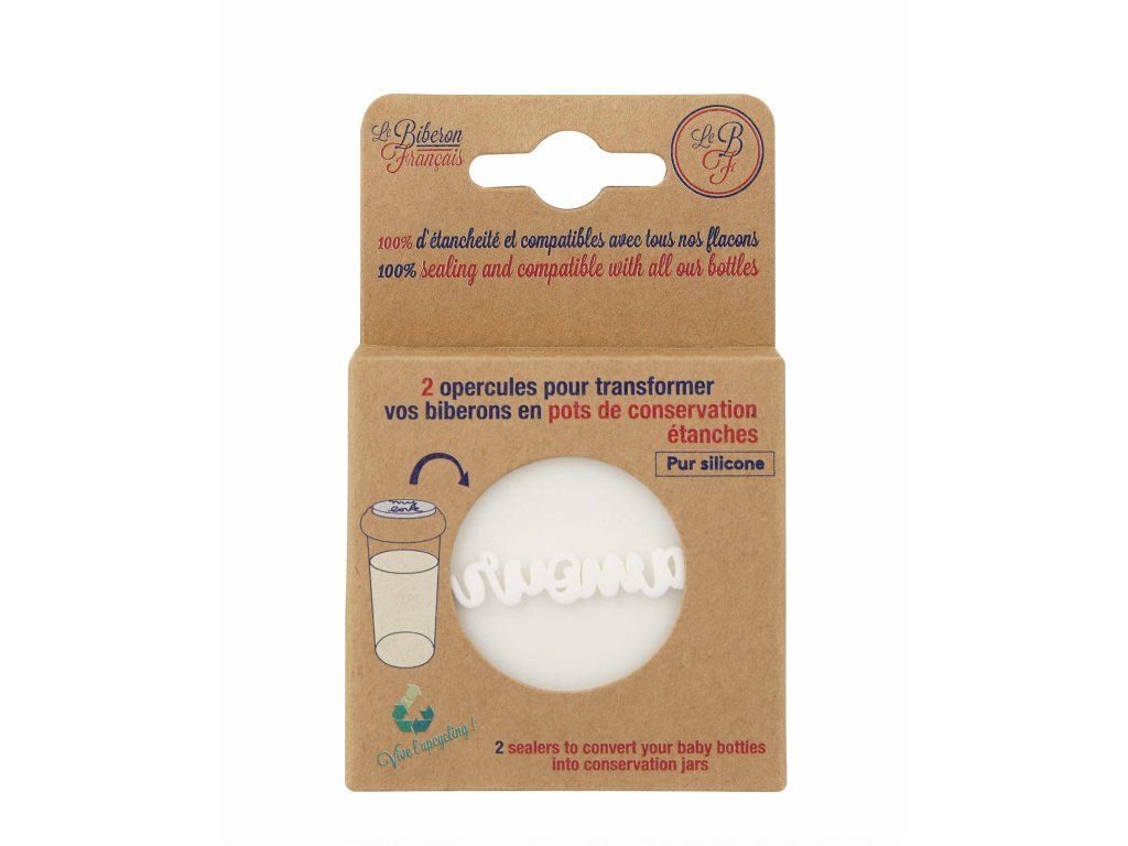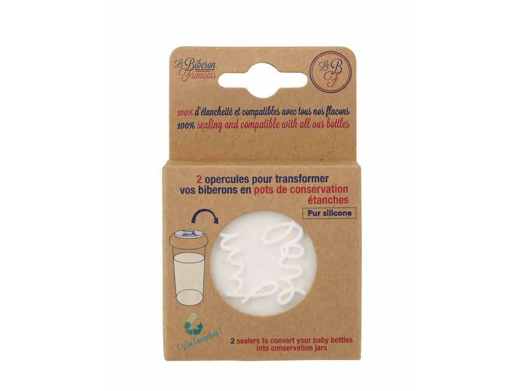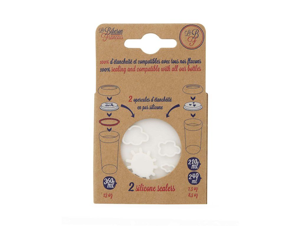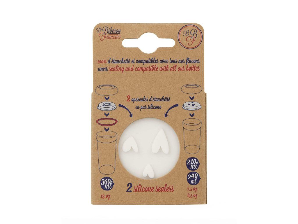 Upravte svoje fľašky! Tieto dve viečka z čistého silikónu premenia každú z našich fliaš Le Biberon Francais na uzatvárateľnú nádobu. Viečka sú 100% tesniace a kompatibilné s každou našou fľaškou Le Biberon Francais. Sú vhodné pre použite s fľaškami s objemom 210 ml, 240 ml aj 360 ml. Čistý potravinársky silikón je vhodný na styk s potravinami. Naše flexibilné viečka je však možné využiť aj inak. Vďaka špeciálnemu reliéfu je možné, aby ste ich použili ako pečiatku na sušienky.Dodatočné parametre