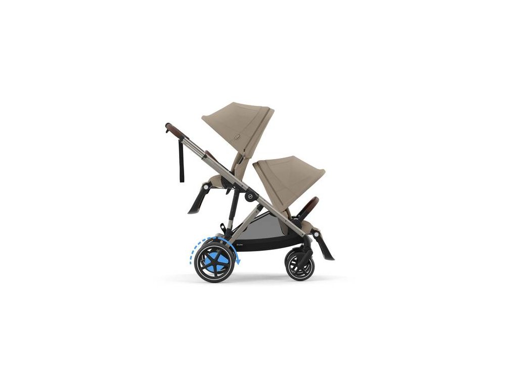 Rýchlo si môžete nastaviť výšku slnečnej striešky na tri rôzne úrovne, aby vyhovovala vášmu dieťaťu počas jeho rastu. Pri používaní kočíka v režime pre súrodencov vám táto funkcia tiež pomôže pohodlne sa umiestniť na ďalšiu postieľku, sedadlo alebo detskú autosedačku.
