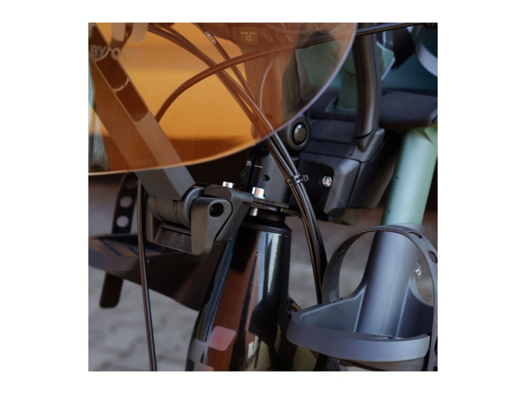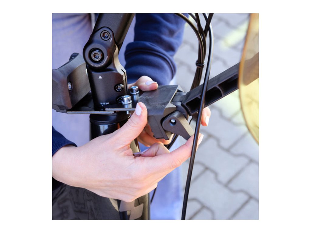 S adaptérom MTB/ATB je možná montáž na horské bicykle, pretože adaptér má hrúbku iba 4 mm, je navrhnutý tak, aby bola inštalácia sedačky Urban Iki vždy možná v kombinácii s predným ochranným sklom s UV filtrom. Ak nie je namontované čelné sklo, je tu krytka, ktorá pekne esteticky doladí montážny systém.