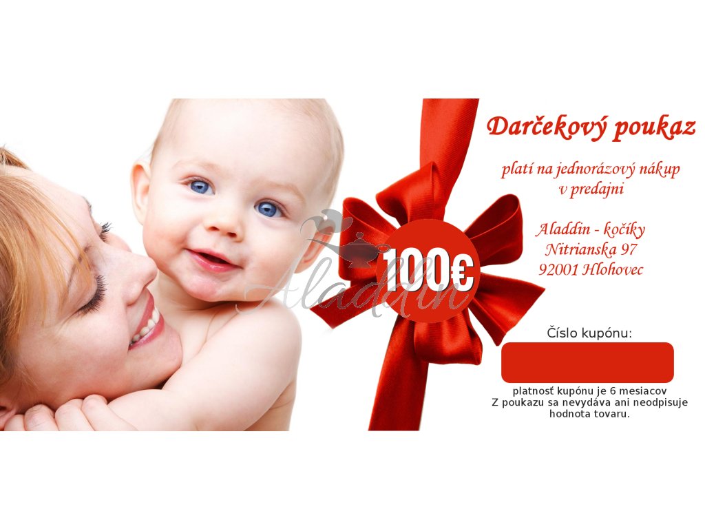 Poukážka je platná v predajni Aladdin kočíky, Nitrianska 97, Hlohovec.