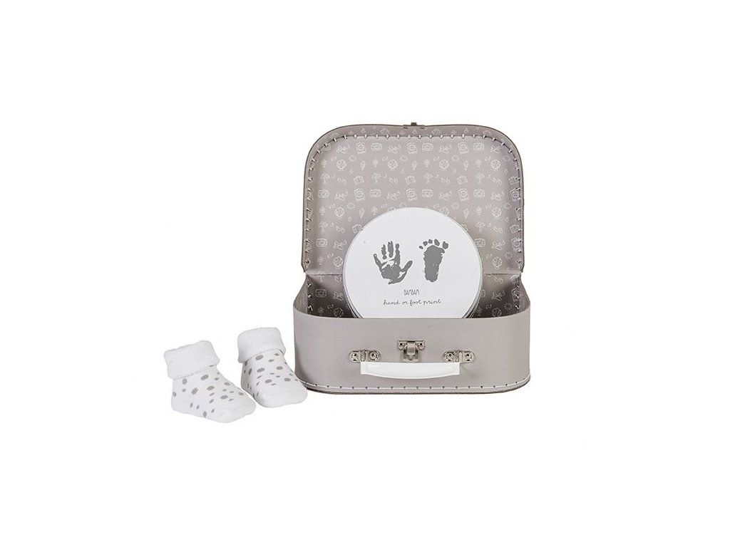 Vnútri sa skrýva odtlačok pre ručičku/nožičku a ponožky z organickej bavlny.