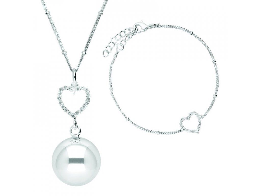 Tehotenská rolnička s náramkom Crystal Heart in silver