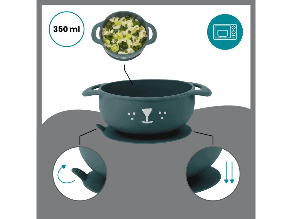 Silikónová miska s prísavkou, lyžičkou a podbradníkom FIRST´ISY KIT Dog