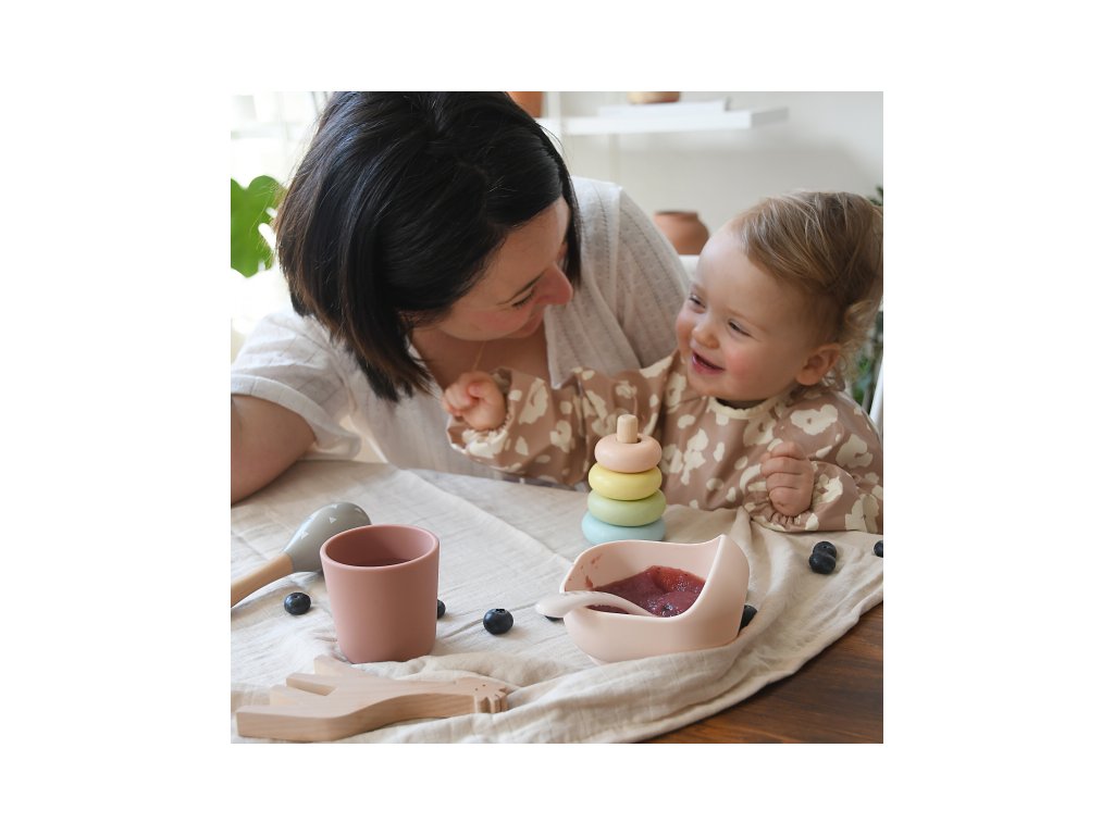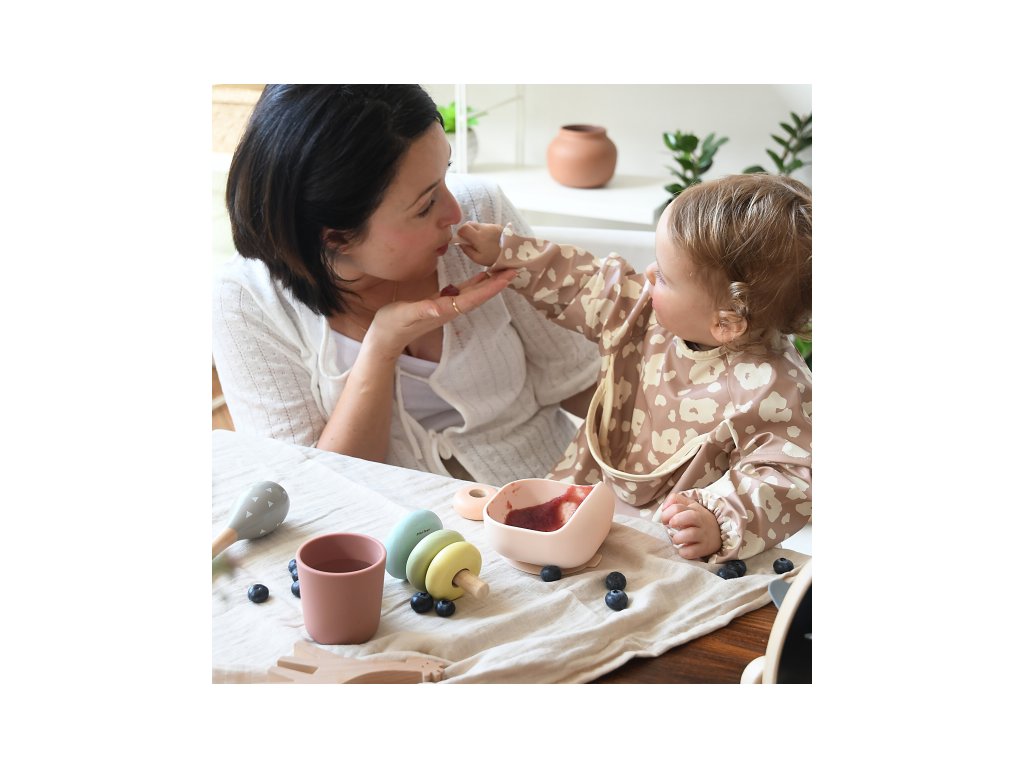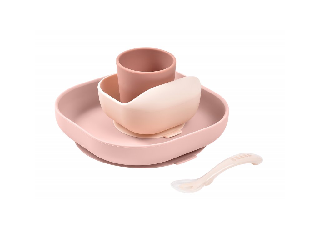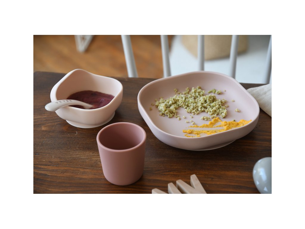 Sada taniera, misky, téglika na pitie a lyžičky z vysoko kvalitného silikónu je ideálna pre prvé samostatné kŕmenie. Prísavka pri miske a tanieri umožňuje uchytenie k stolu alebo pultu jedálenskej stoličky. Ergonomický tvar uľahčuje naberanie príkrmu.