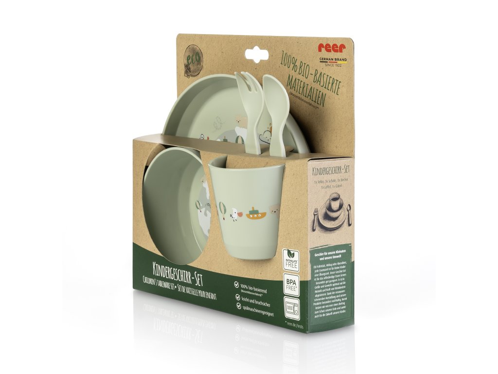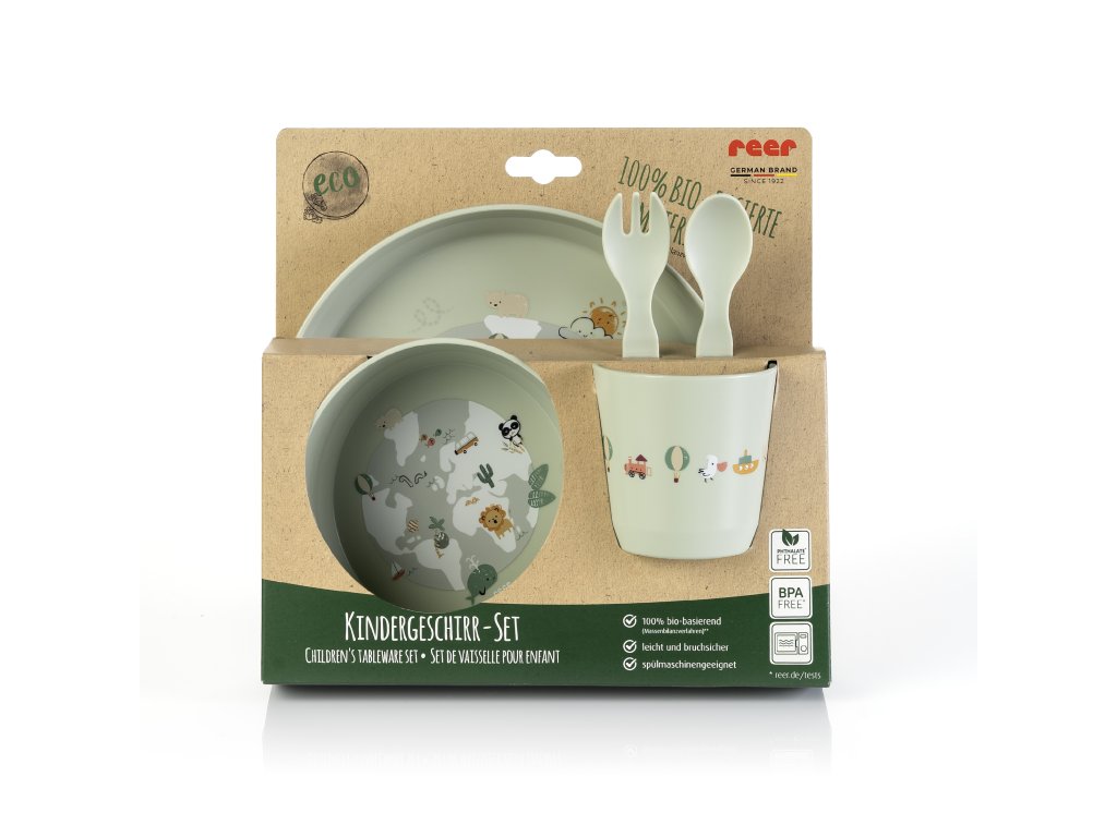 reer bola špeciálne navrhnutá tak, aby zodpovedala potrebám malých detí. Je ľahká, ergonomická a bezpečná. S láskyplne navrhnutým tanierikom, miskou, hrnčekom, lyžičkou a vidličkou je ideálny pre prvé pokusy o samostatné stolovanie a zároveň prináša veľa zábavy.