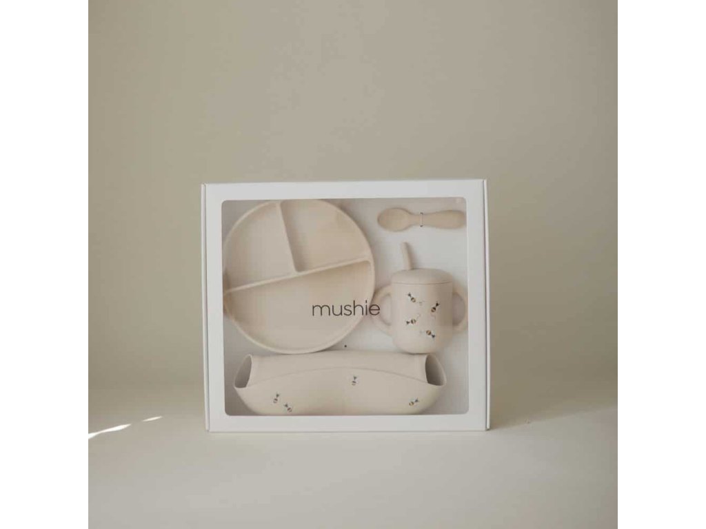 Mushie Silikónový jedálenský set pre batoľatá – detaily