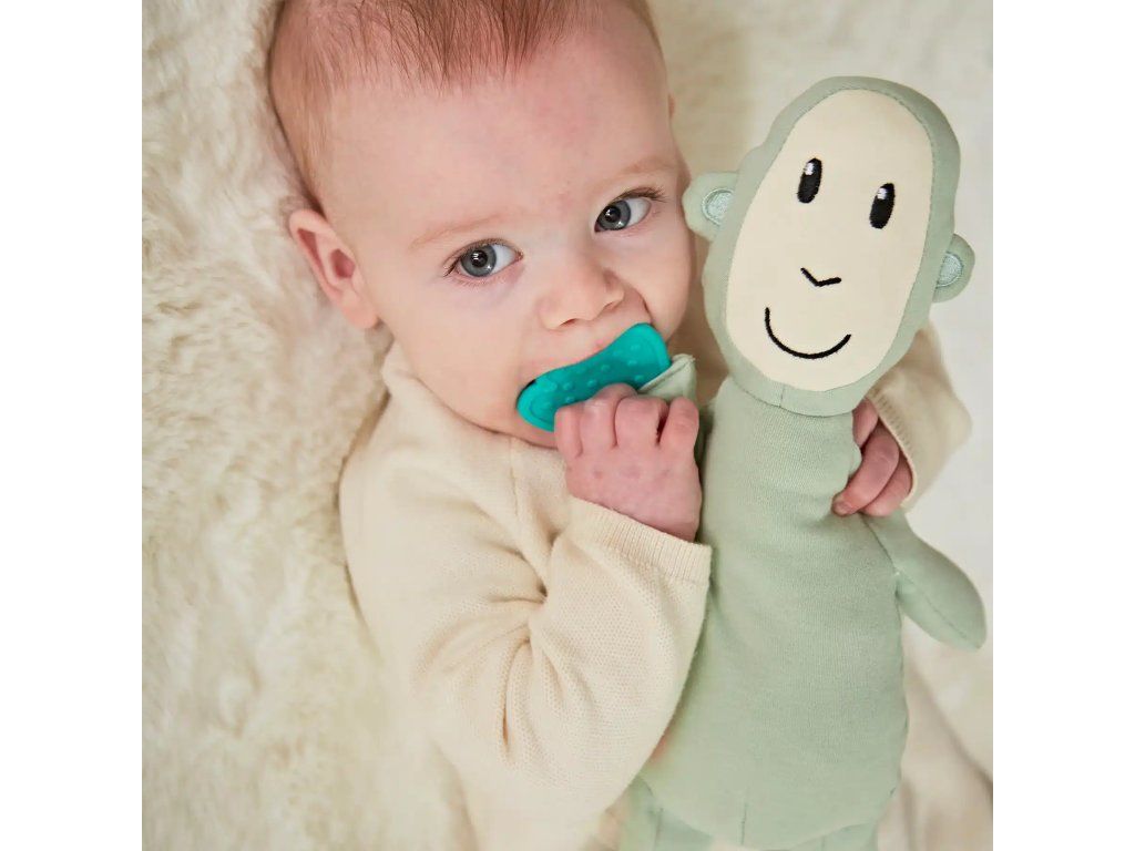 Hryzadlo MATCHSTICK MONKEY je navrhnuté presne pre malé detské rúčky a poskytuje upokojujúcu úľavu boľavým ďasnám. Antimikrobiálna ochrana BioCote® pomáha udržiavať baktérie na uzde, zatiaľ čo šikovné výstupky uľahčujú nanášanie gélu na ťažko dostupné zadné zúbky. Ľahko uchopiteľné „ruky“ podporujú rozvoj jemnej motoriky a umožňujú dieťatku samostatne sa upokojiť.