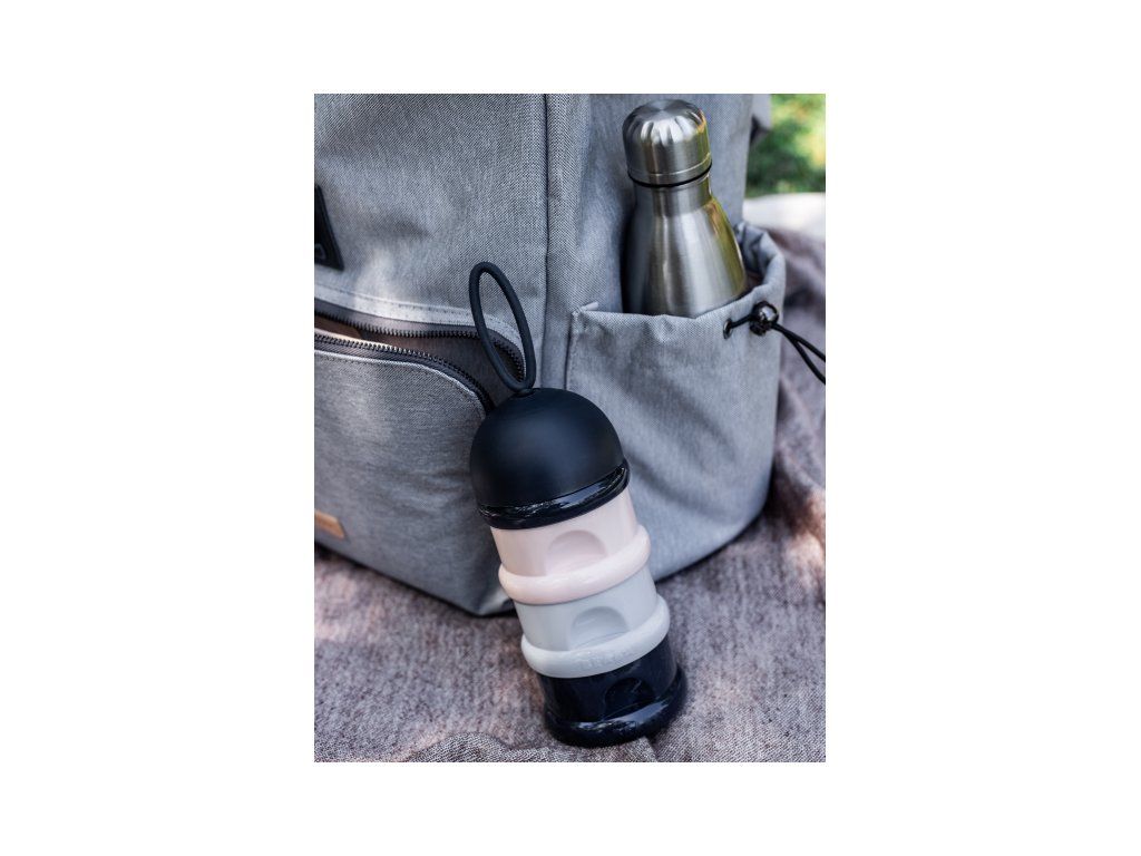 Tri kompaktné dávkovače sú prepojené skrutkovacím závitom, násypné viečko a ochranné viečko je taktiež skrutkovacie. Sušené mlieko je hygienicky uložené, stačí len nasypať s pomocou násypného viečka do akejkoľvek dojčenskej fľaše bez rizika rozsypania.