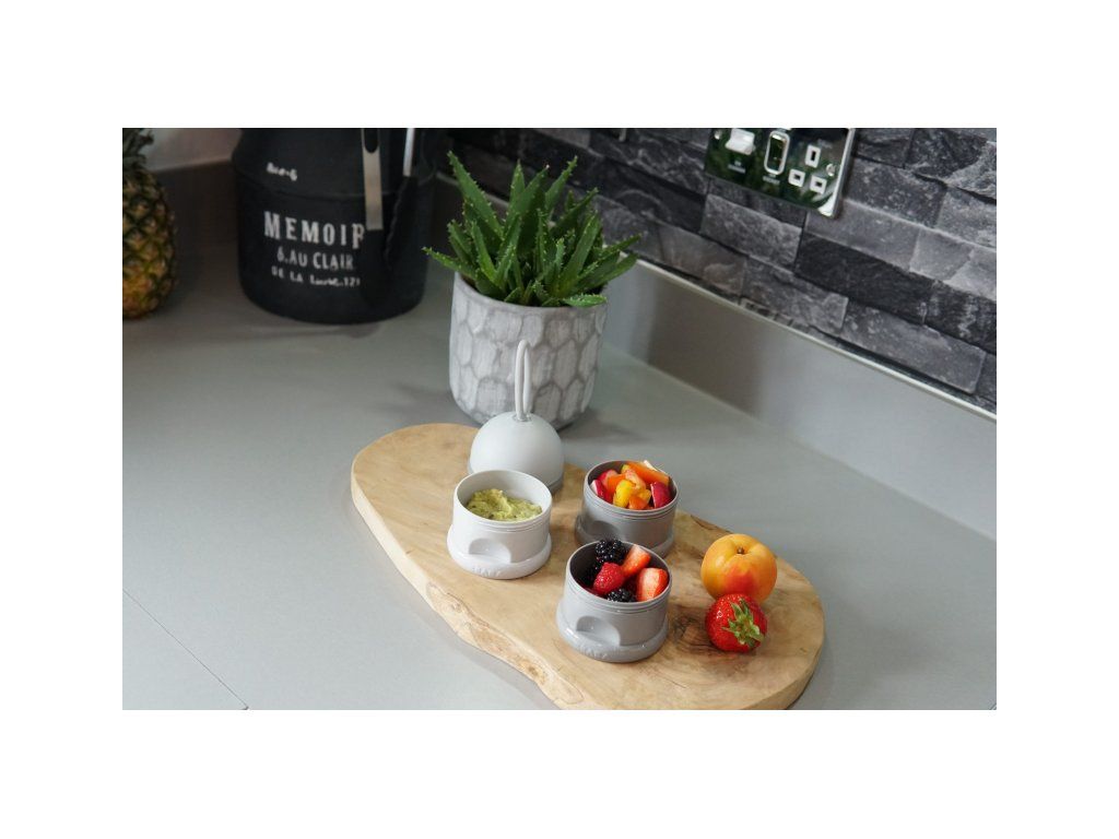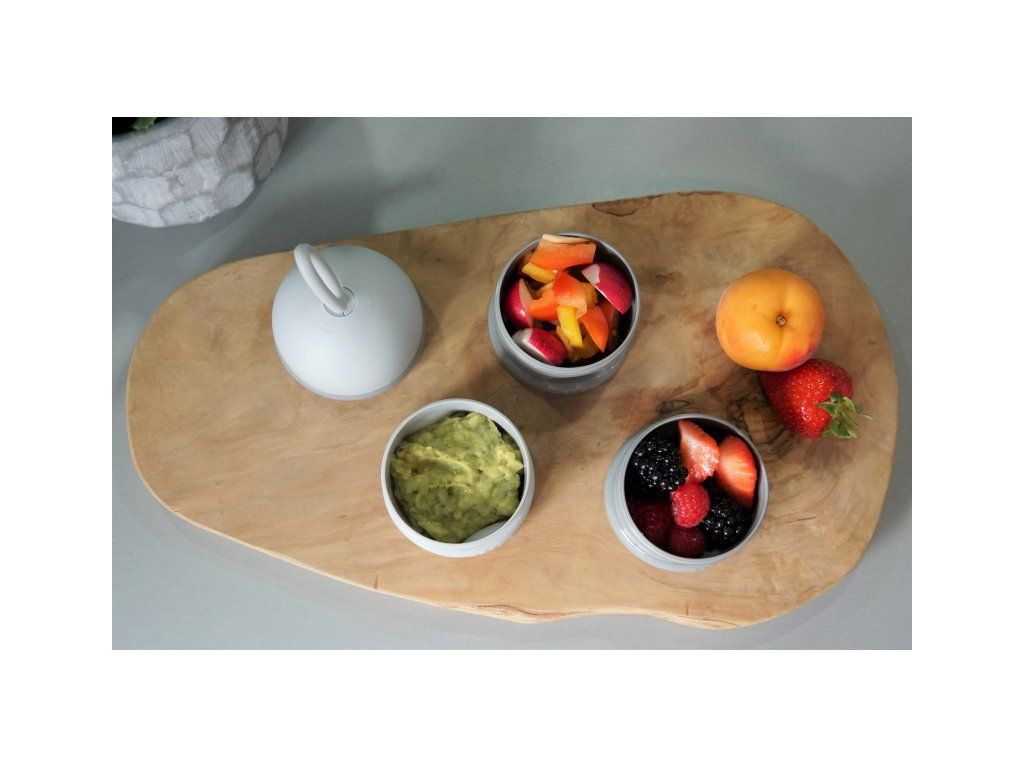 V staršom veku dieťaťa môžete tégliky používať na detské desiate. Tri skrutkovacie tégliky umožňujú oddelené uchovanie jednotlivých častí desiaty, napr. kúskov ovocia alebo zeleniny, detských sušienok a pod.