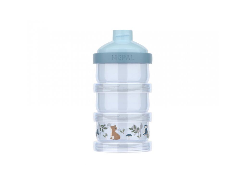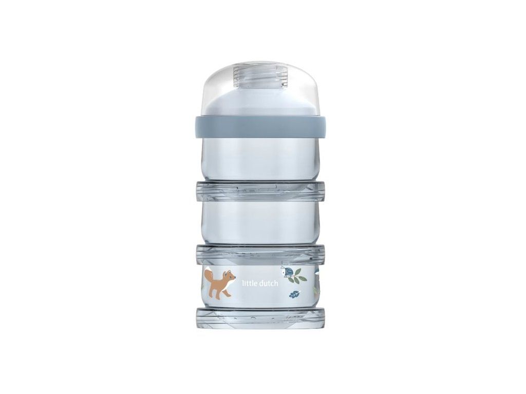 Trojdielna nádoba na sušené mlieko Little Dutch Forest Friends ponúka jednoduchý a hygienický spôsob prípravy dojčenského mlieka doma na cestách. Nádoba obsahuje tri stohovateľné tégliky, ktoré sú jednotlivo uzavreté skrutkovacími viečkami. Praktické nasýpacie viečko hore uľahčuje dávkovanie sušeného mlieka do fľaše.