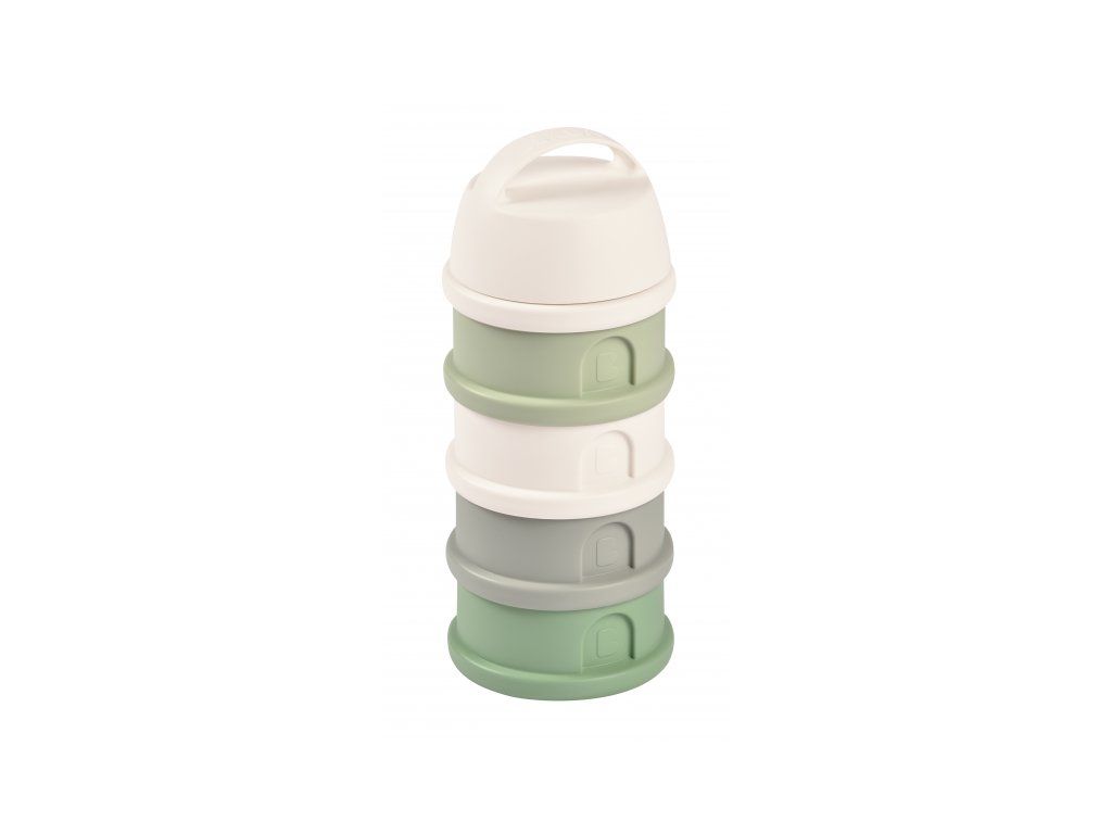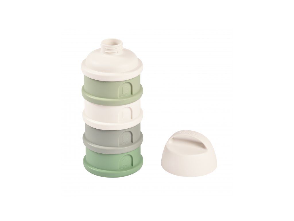 Tri kompaktné dávkovače sú prepojené skrutkovacím závitom, násypné viečko a ochranné viečko je taktiež skrutkovacie. Sušené mlieko je hygienicky uložené, stačí len nasypať s pomocou násypného viečka do akejkoľvek dojčenskej fľaše bez rizika rozsypania.