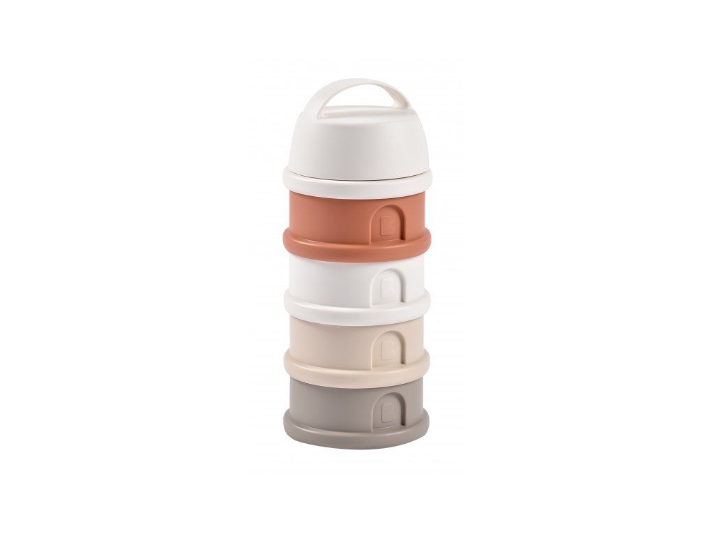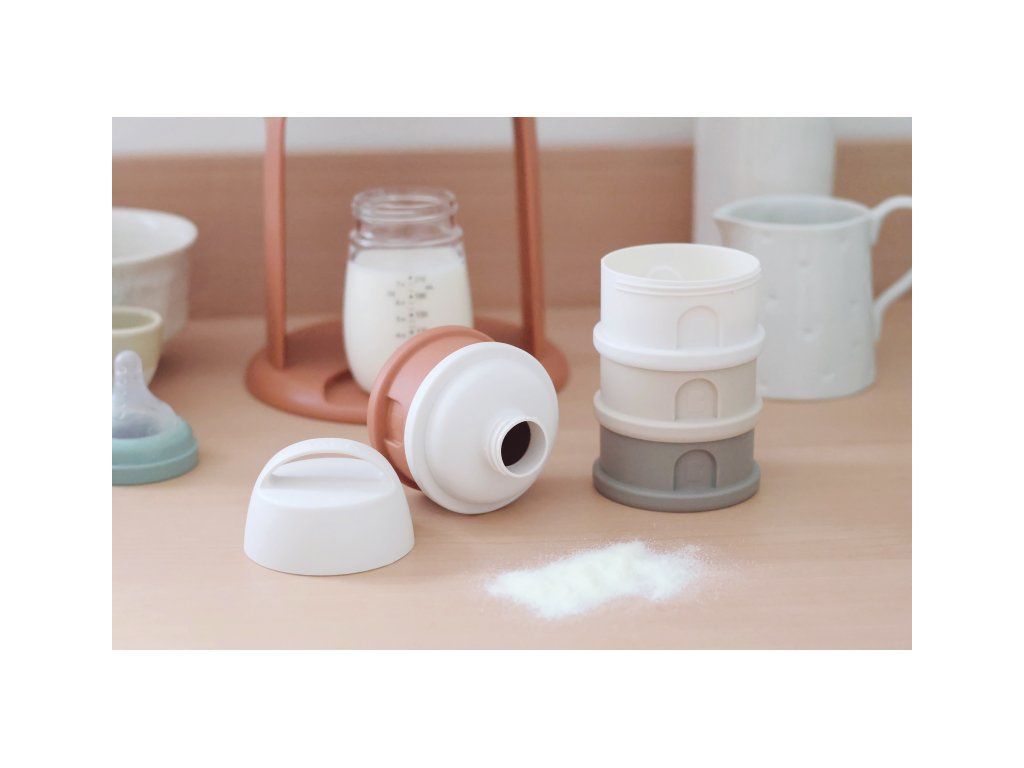 Tri kompaktné dávkovače sú prepojené skrutkovacím závitom, násypné viečko a ochranné viečko je taktiež skrutkovacie. Sušené mlieko je hygienicky uložené, stačí len nasypať s pomocou násypného viečka do akejkoľvek dojčenskej fľaše bez rizika rozsypania.