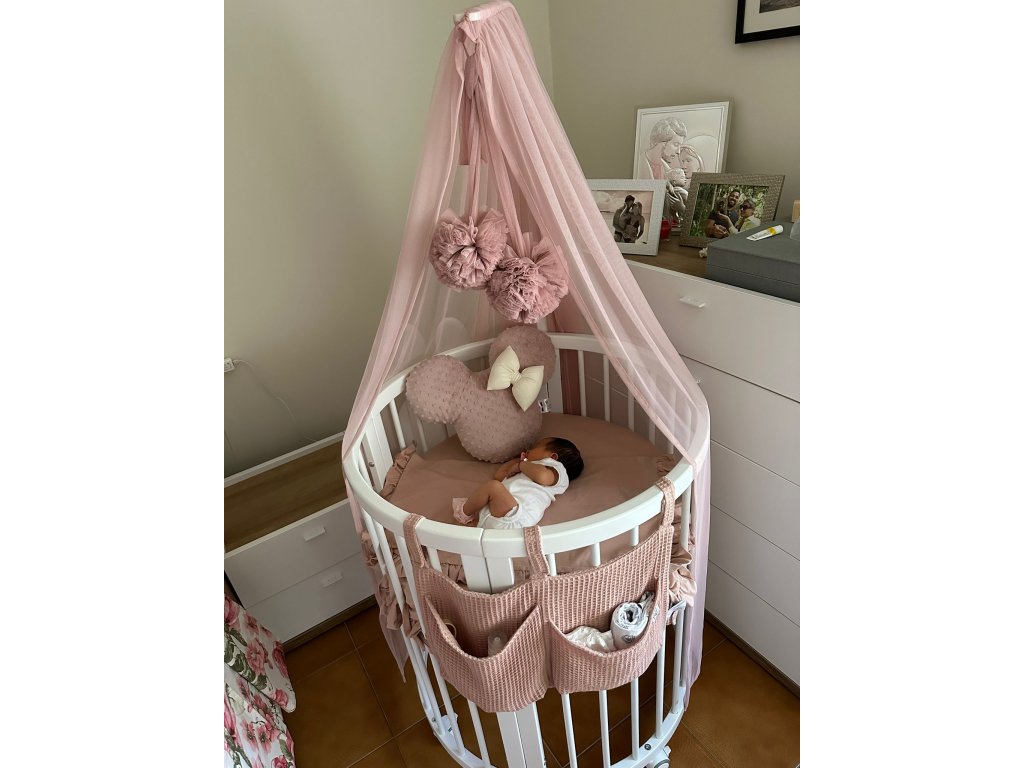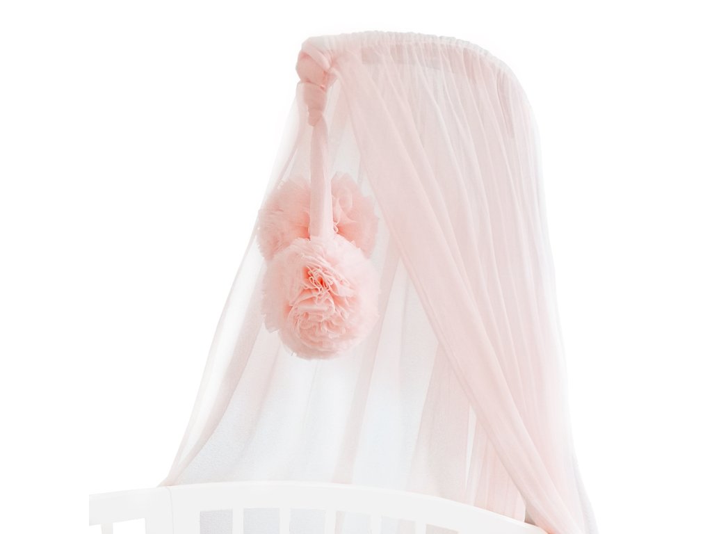 Tylové nebesá s pom pom vytvoria vášmu dieťatku čarovný priestor na spanie, hranie, či odpočinok. Vďaka držiaku na nebesá sa dajú ľahko zavesiť nad detskú postieľku čím tvoria malé detské kráľovstvo. Nebesá rozvíjajú detskú predstavivosť a poskytujú dieťatku pocit ochrany a súkromia, keď to práve potrebuje. Počas dňa tlmia svetlo v izbe čo takisto prispieva k zlepšeniu spacích návykov.