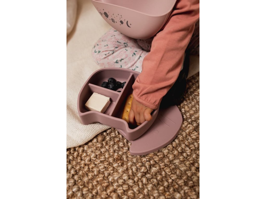 Silikónový desiatový box Cotton Cloud je vďaka svojej veľkosti ideálnym pomocníkom na cesty, pretože ho ľahko uložíte do tašky či batohu. Váš drobček si môže vychutnávať vždy čerstvý snack z desiatového boxu rozdeleného priehradkami, takže nedôjde k zmiešaniu jedla. Tip: použite veko desiatového boxu ako malý tanierik.